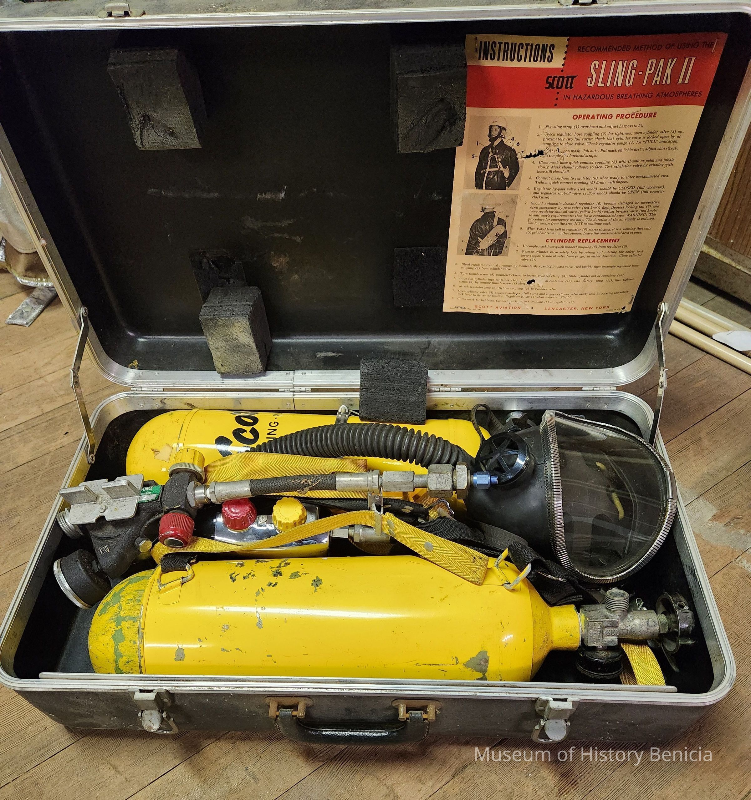 Breathing air mask Kit in carrying case for Scott Air Pak Sling Pak II two yellow tanks, mask and regulator.