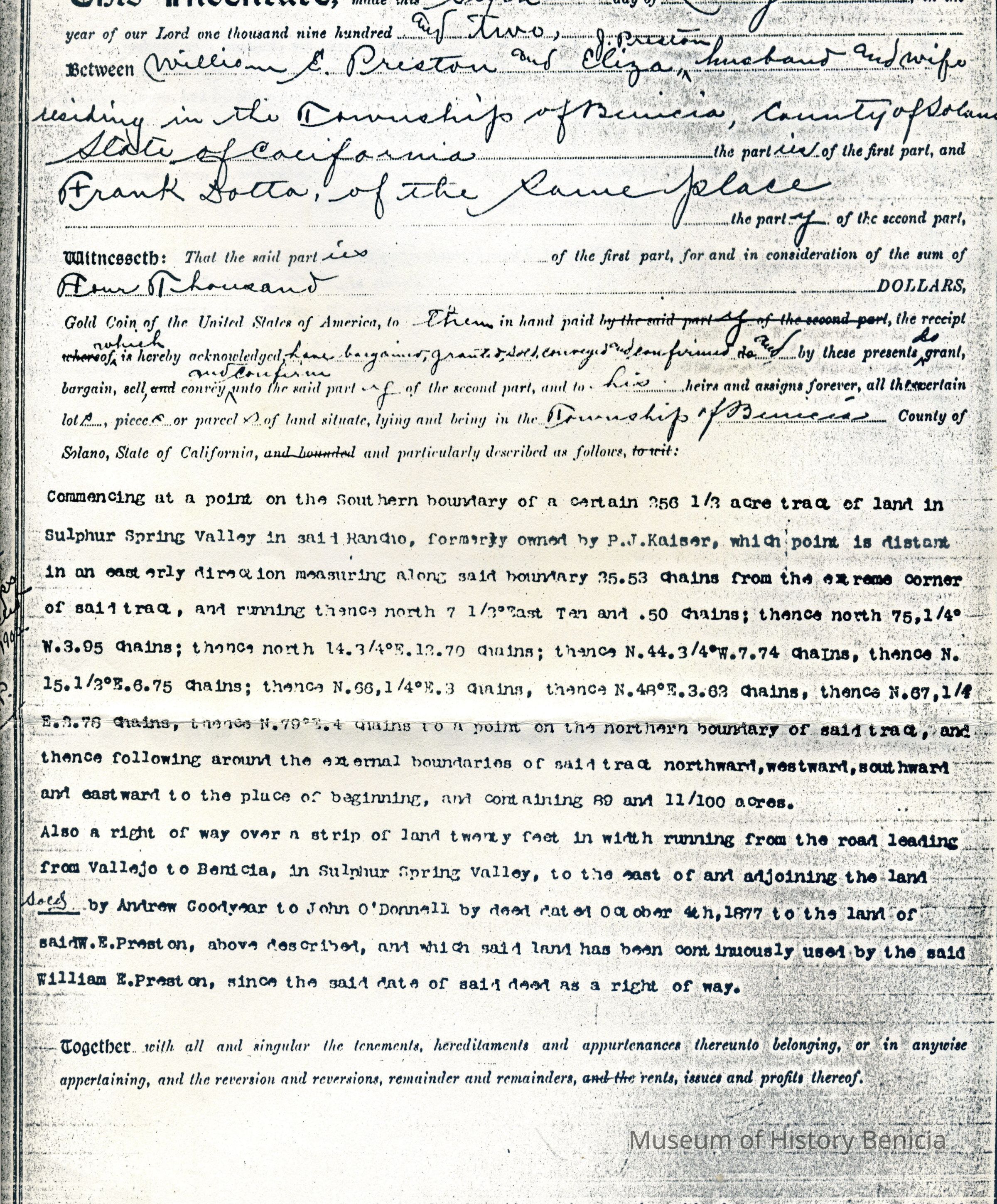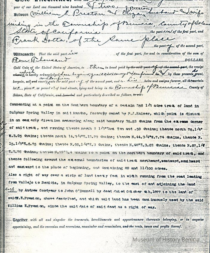 Attached to the article is a copy of the deed of transfer for the Lake Herman property in 1902 from William Preston to Frank Dotta.Collection