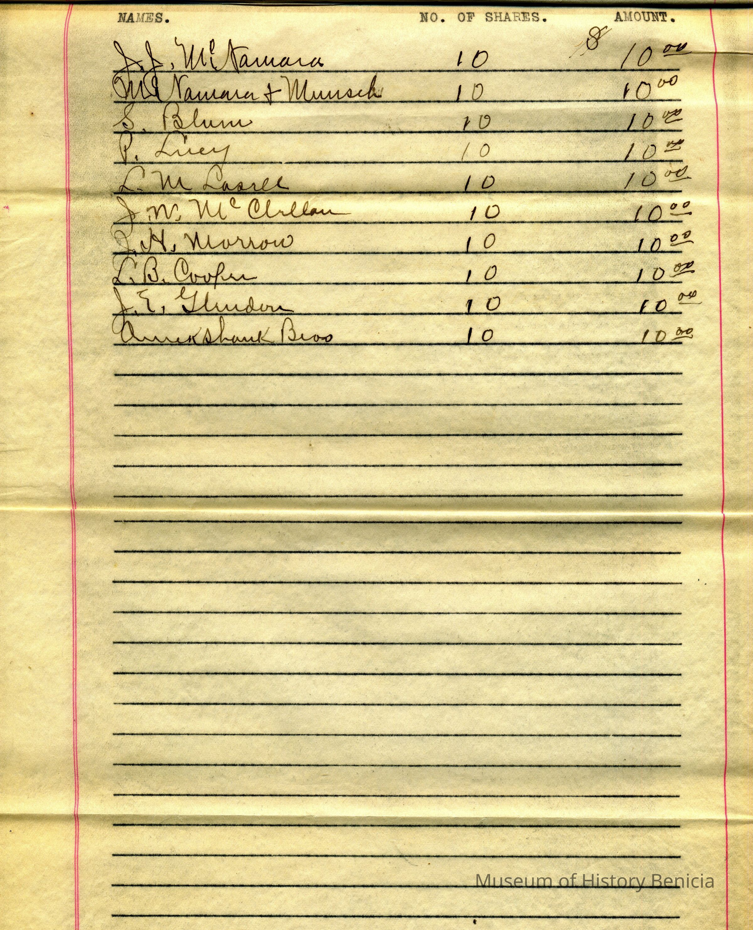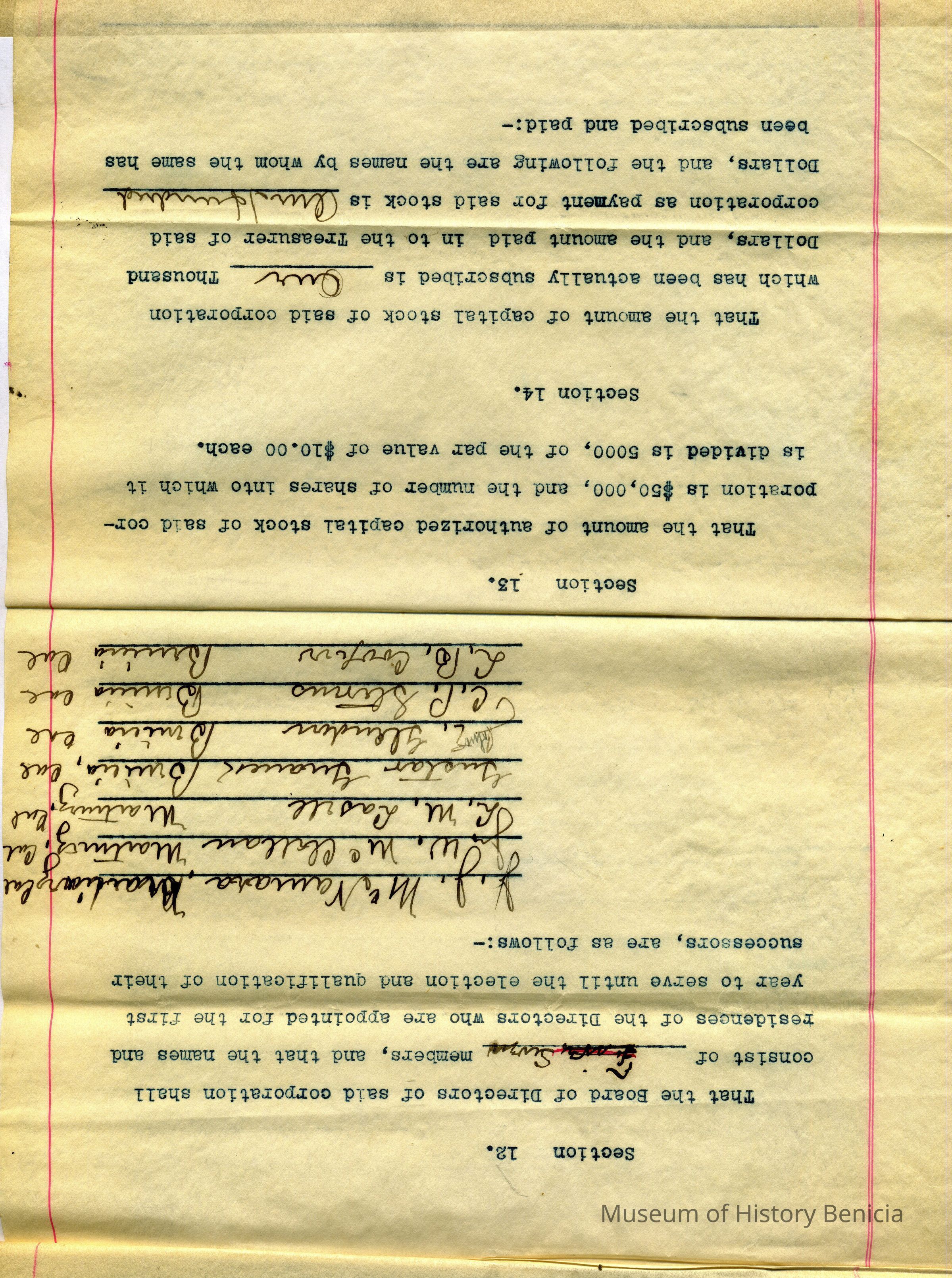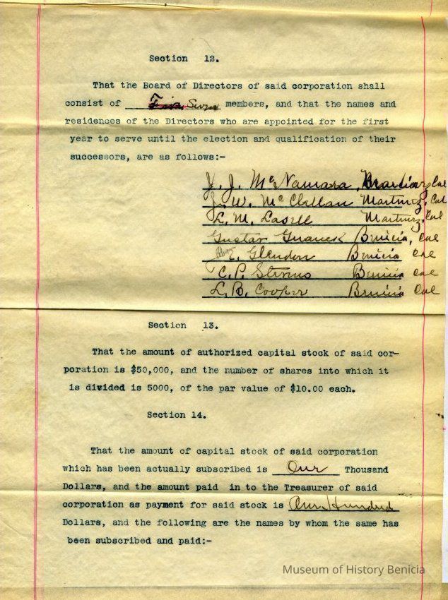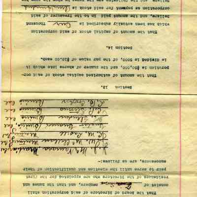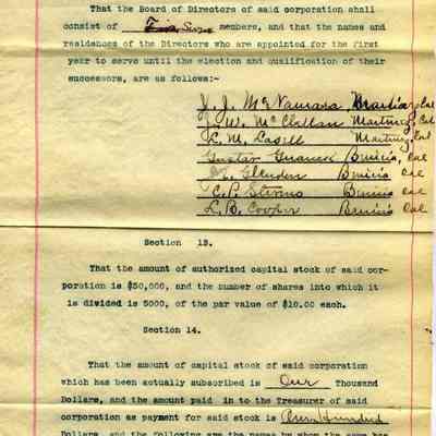 the document consists of 7 pages and includes the names of the stockholders of the corporation and names of the City, County, State officials.Collection