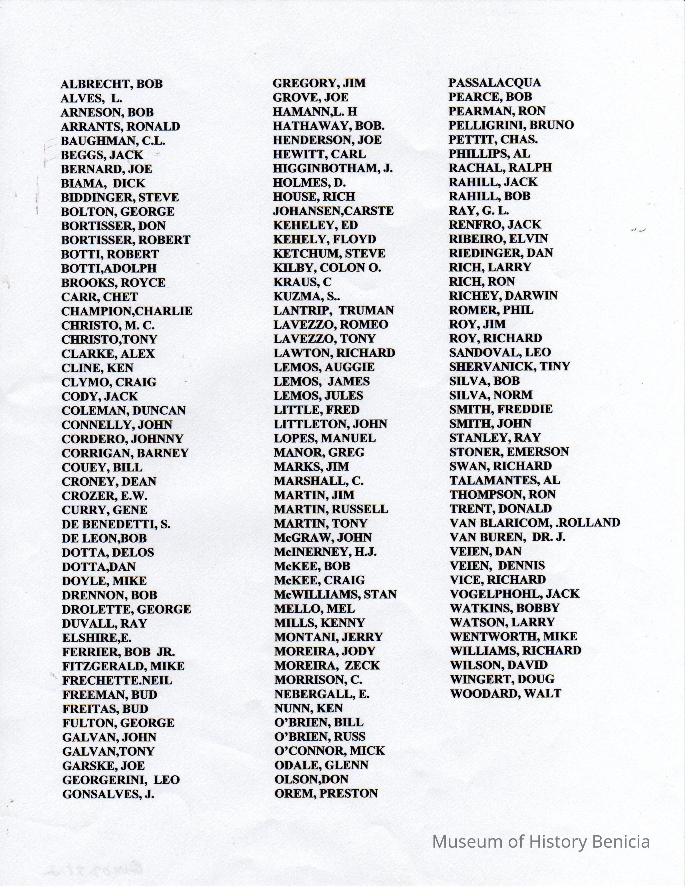 Typed list of names who were at the dinner of Phil Goettel and who signed a football.
