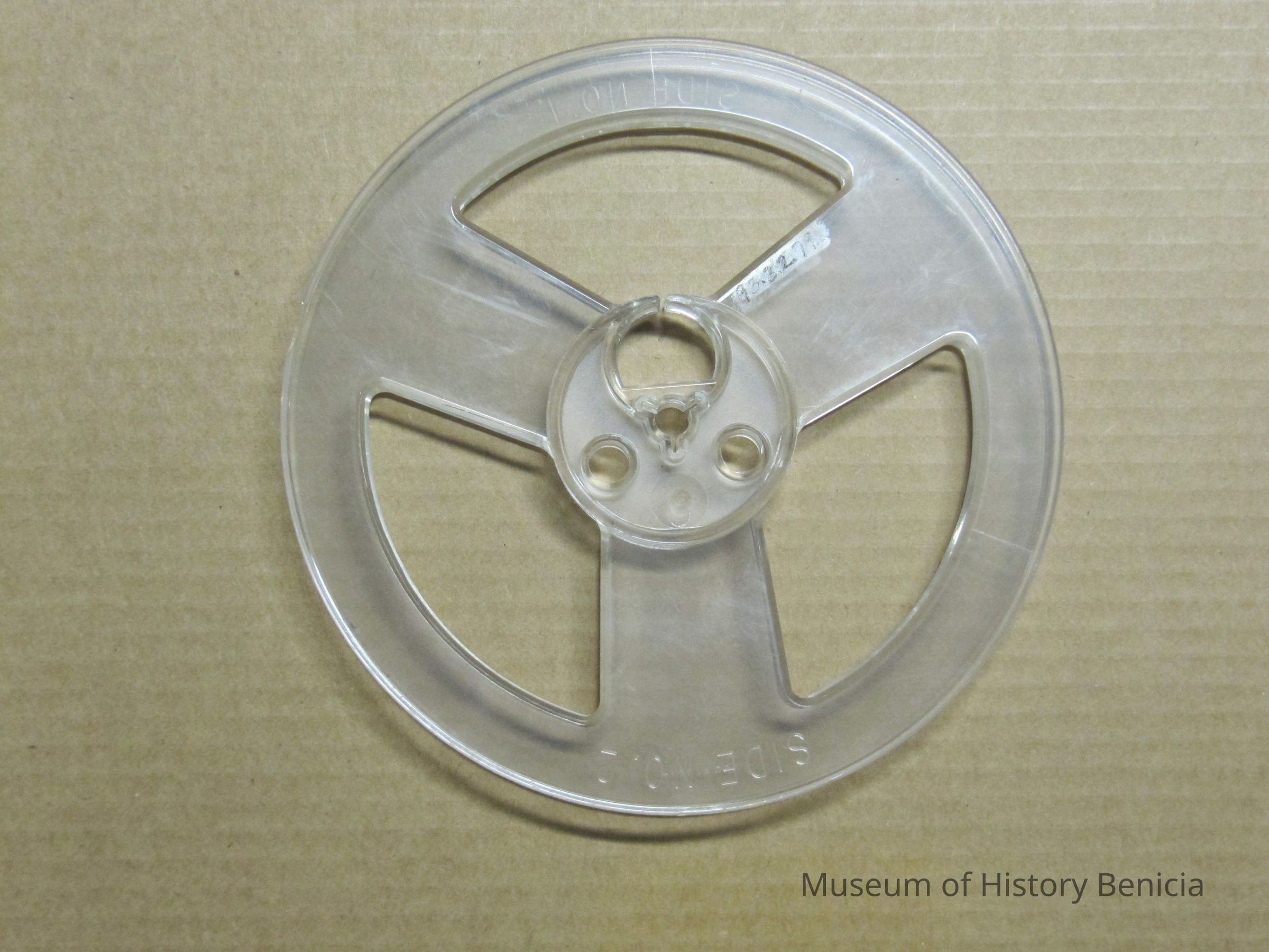 clear audiotype reel with "side nol 1" on one side and "side no. 2" on the other