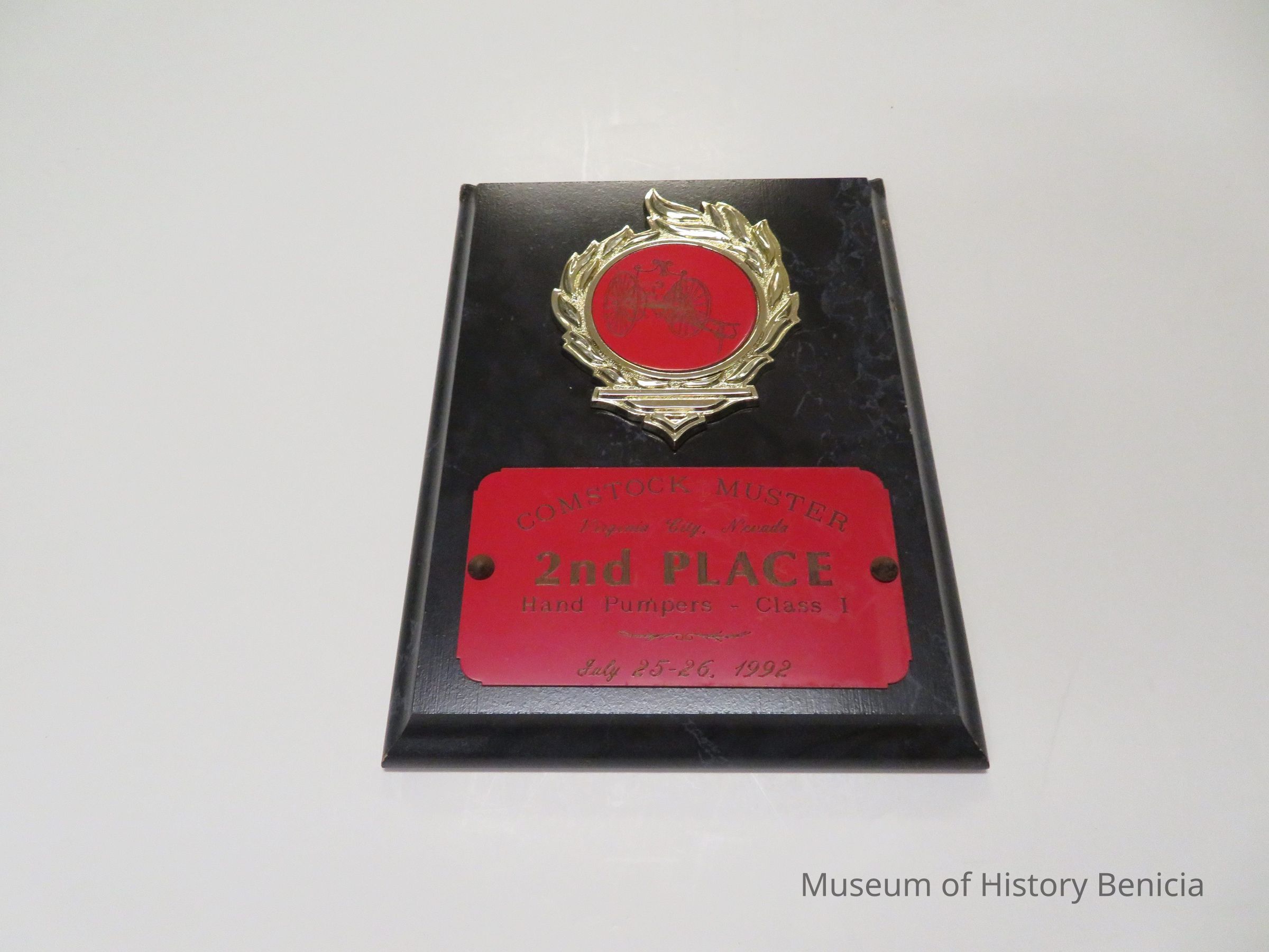 "Comstock Muster-Virginia City, Nevada-2nd Place-Hand Pumpers Class 1-July 25-26, 1992" Sketch of hose cart insignia