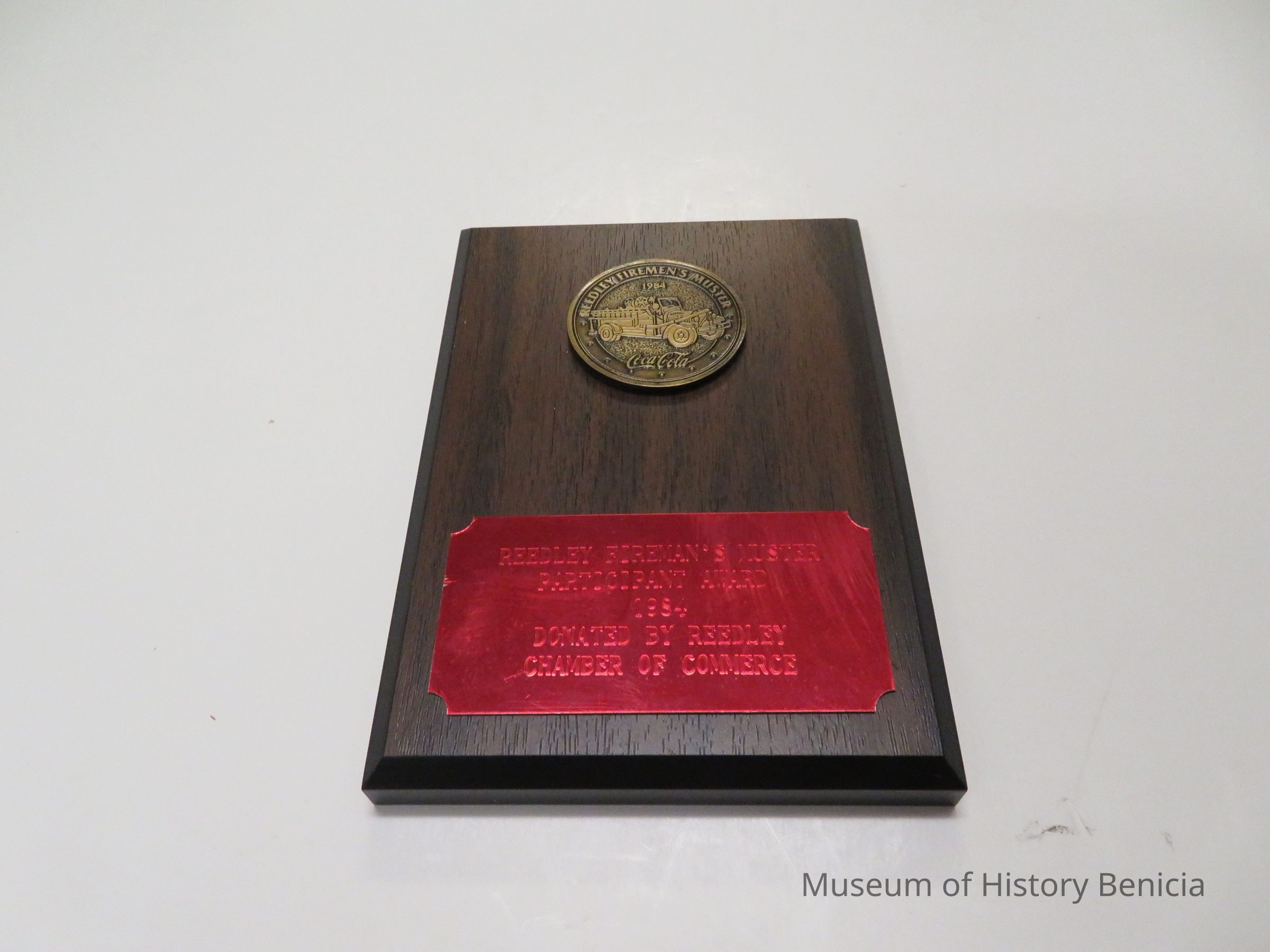 "Reedley Firemen's Muster-Coca-Cola" "Reedley Fireman's Muster -Participant Award 1984-Donated by Reedley Chamber of Commerce"
