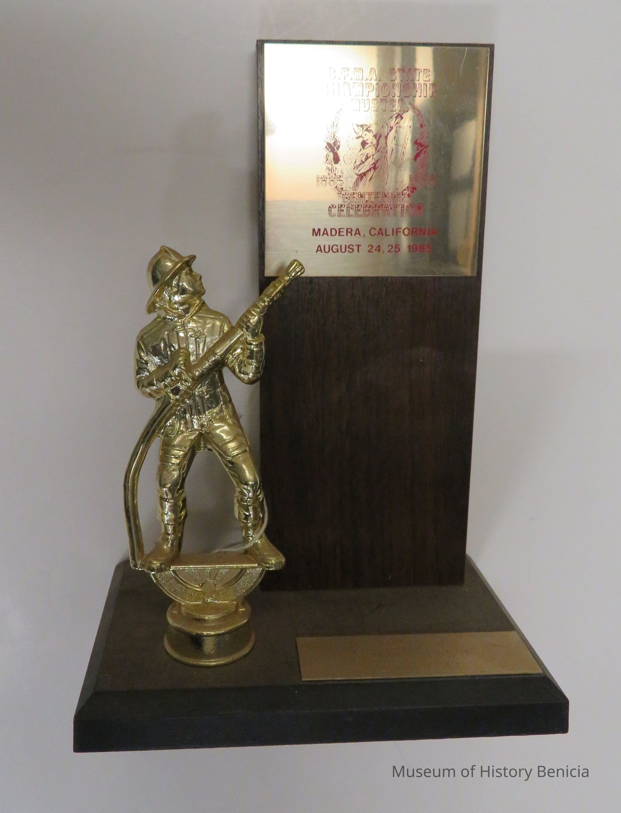 "C.F.M.A State Championship Muster-Centennial Celebration-Madera, California-August 24, 25, 1985" "Class 3 Hand Pumper 2nd Place"