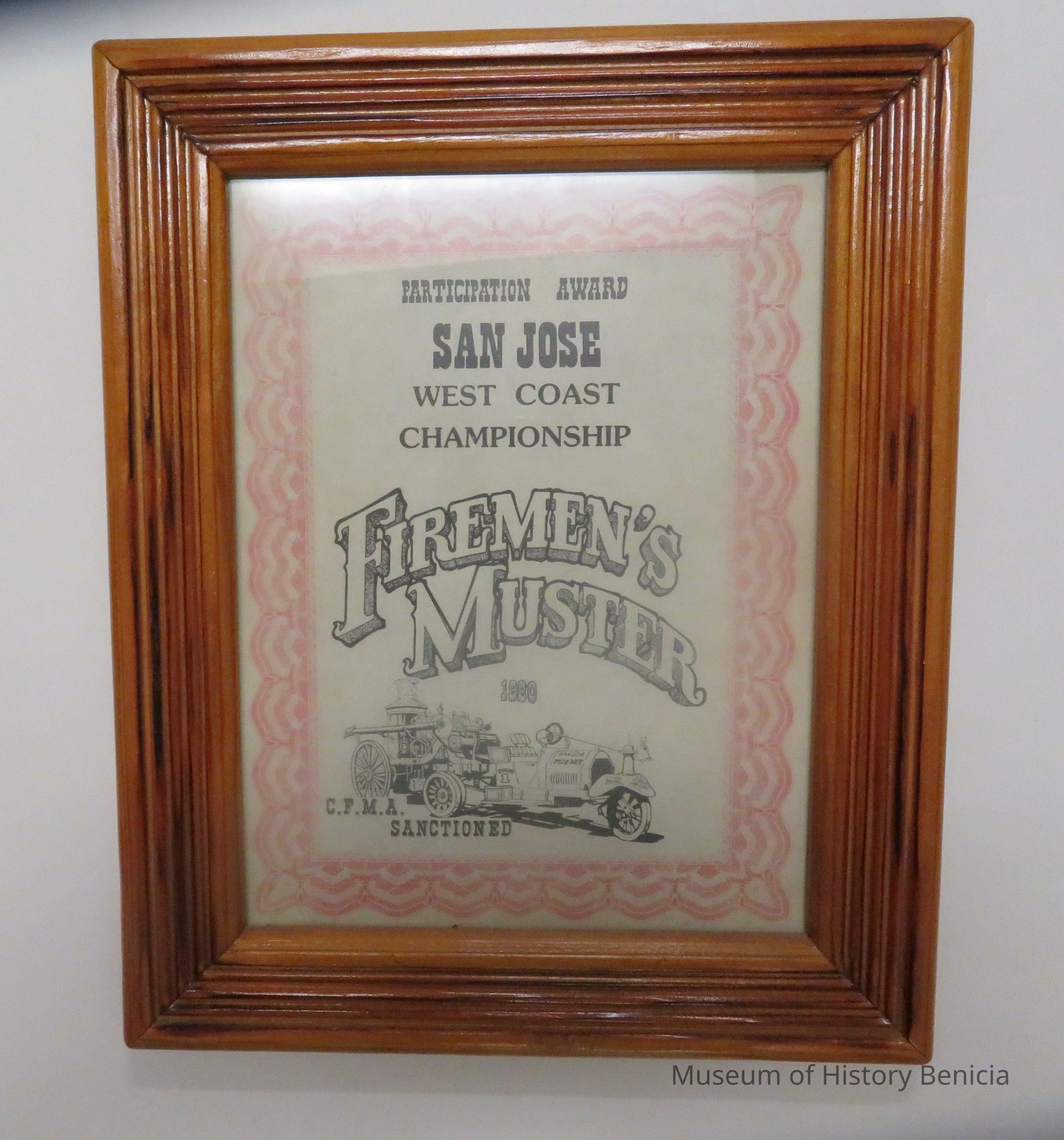 Wording: Participation award San Jose West Coast Championship Firemen's Muster 1980.