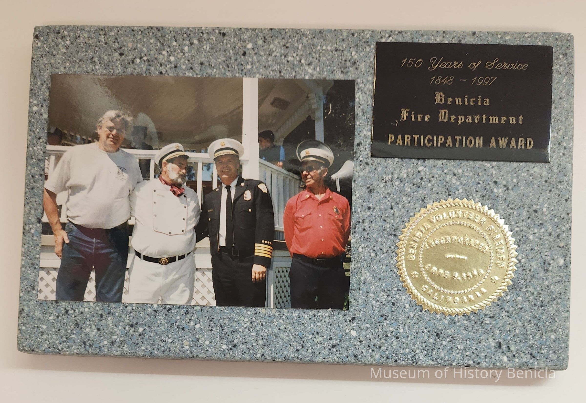 on plate: 150 years of Service / 1848-1997 / Benicia Fire Department / Participation Award