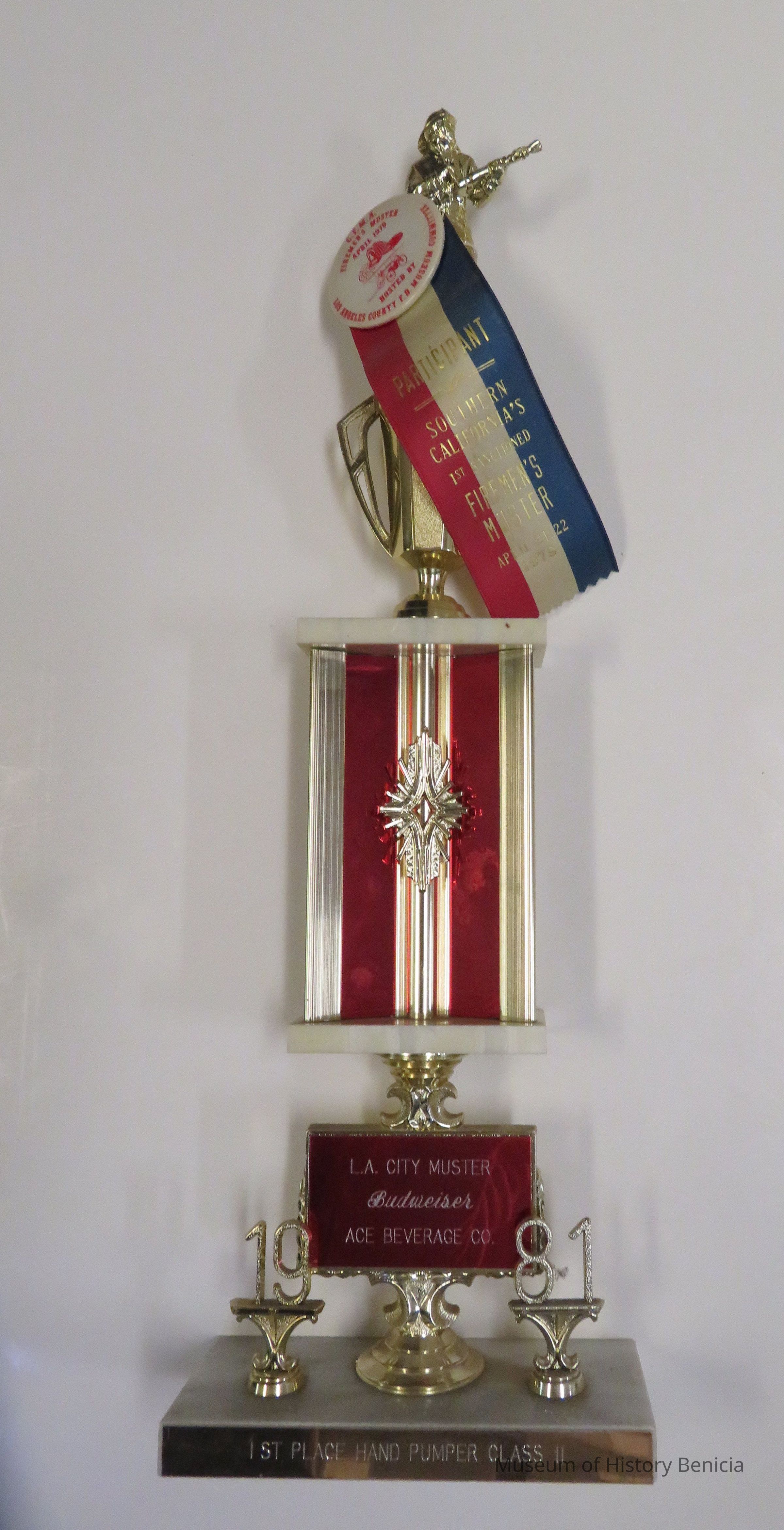 L.A. City Muster Budweiser ACE Beverage Company Gold plastic frieman with hose on top 1st place hand pumper Class II 1979