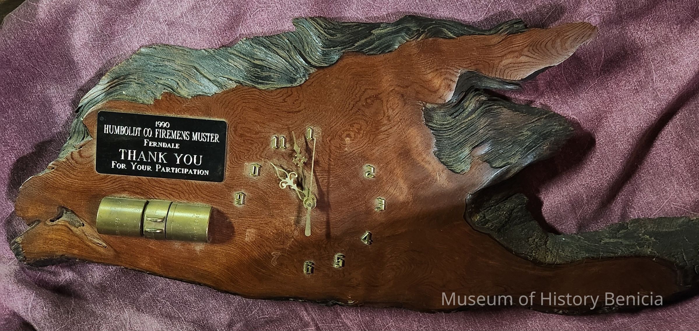 Redwood Clock, battery operated; appears to be a slice of a burl.