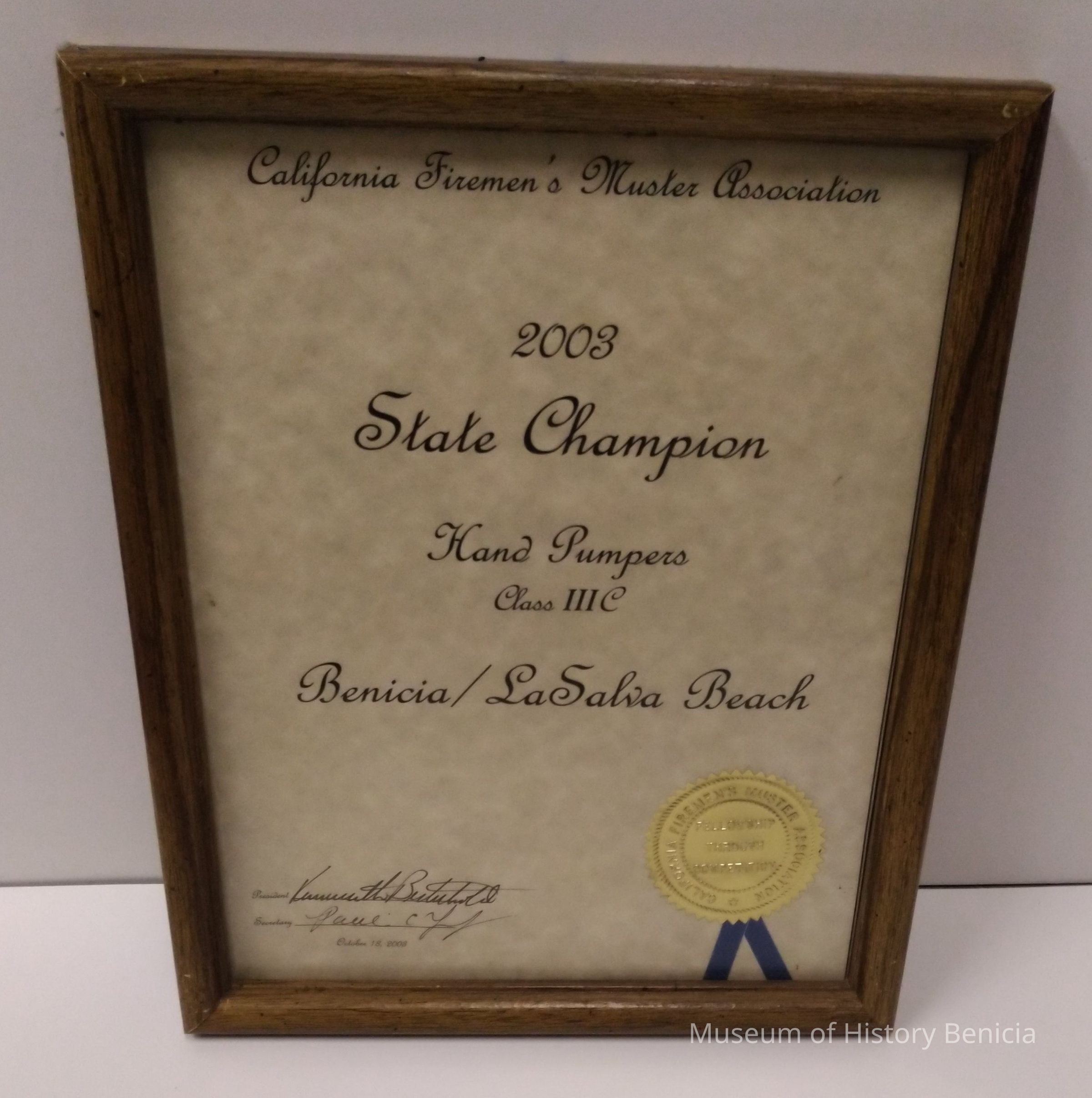 California Firemen's Muster Association 2003 State Champion Hand Pumpers Class IIIC Benicia /LaSalva Beach