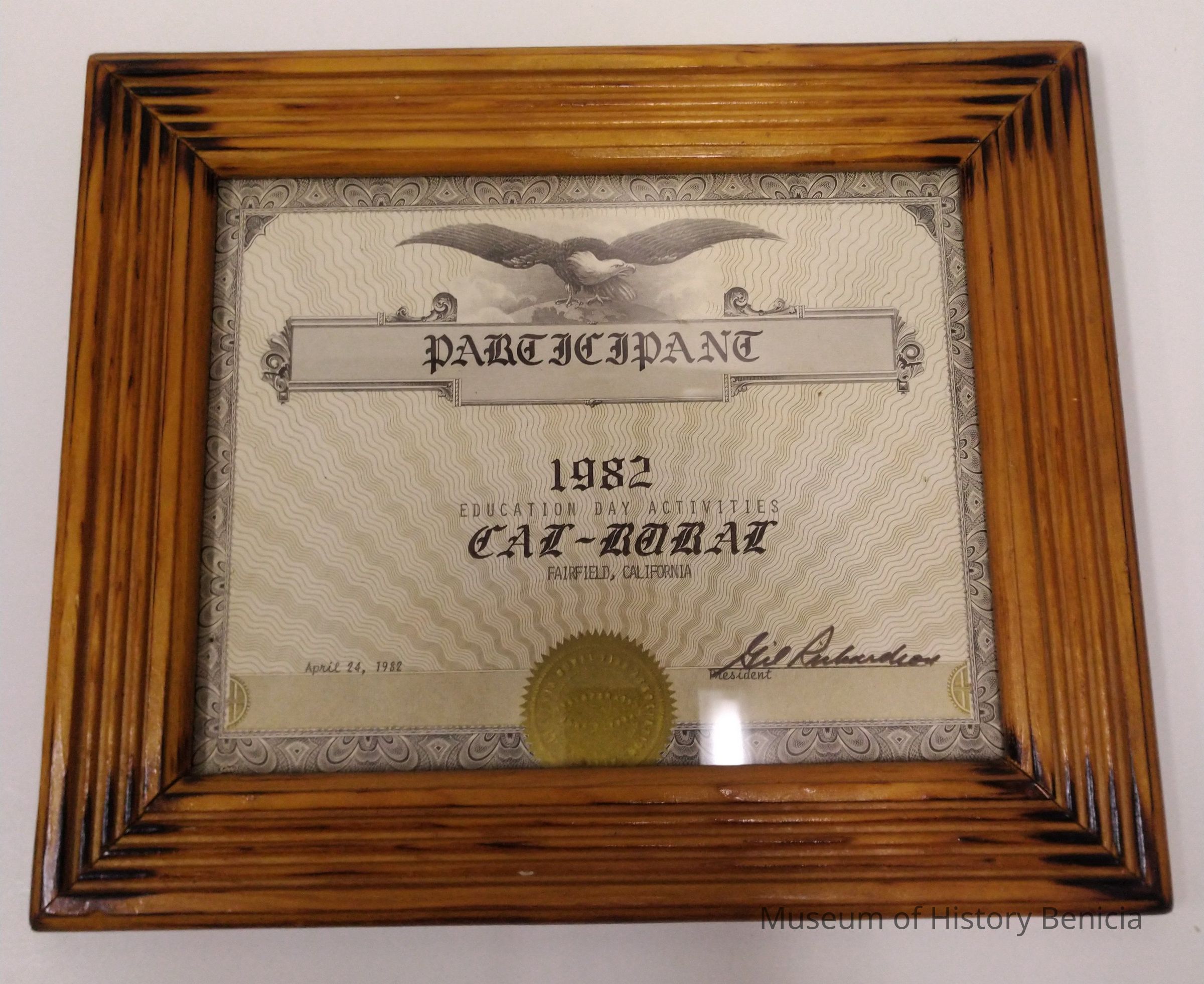 Participant Award - Education Day Activities - Fairfield California - April 24 1982