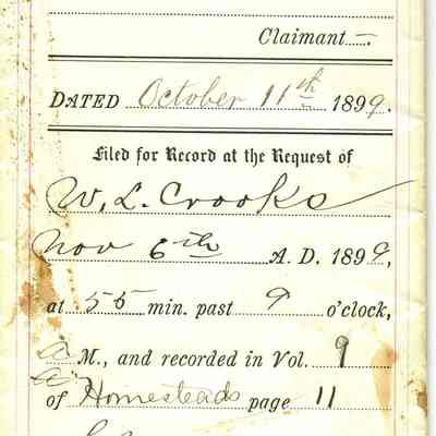 Declaration of Homestead of W.L. Crooks, claimant