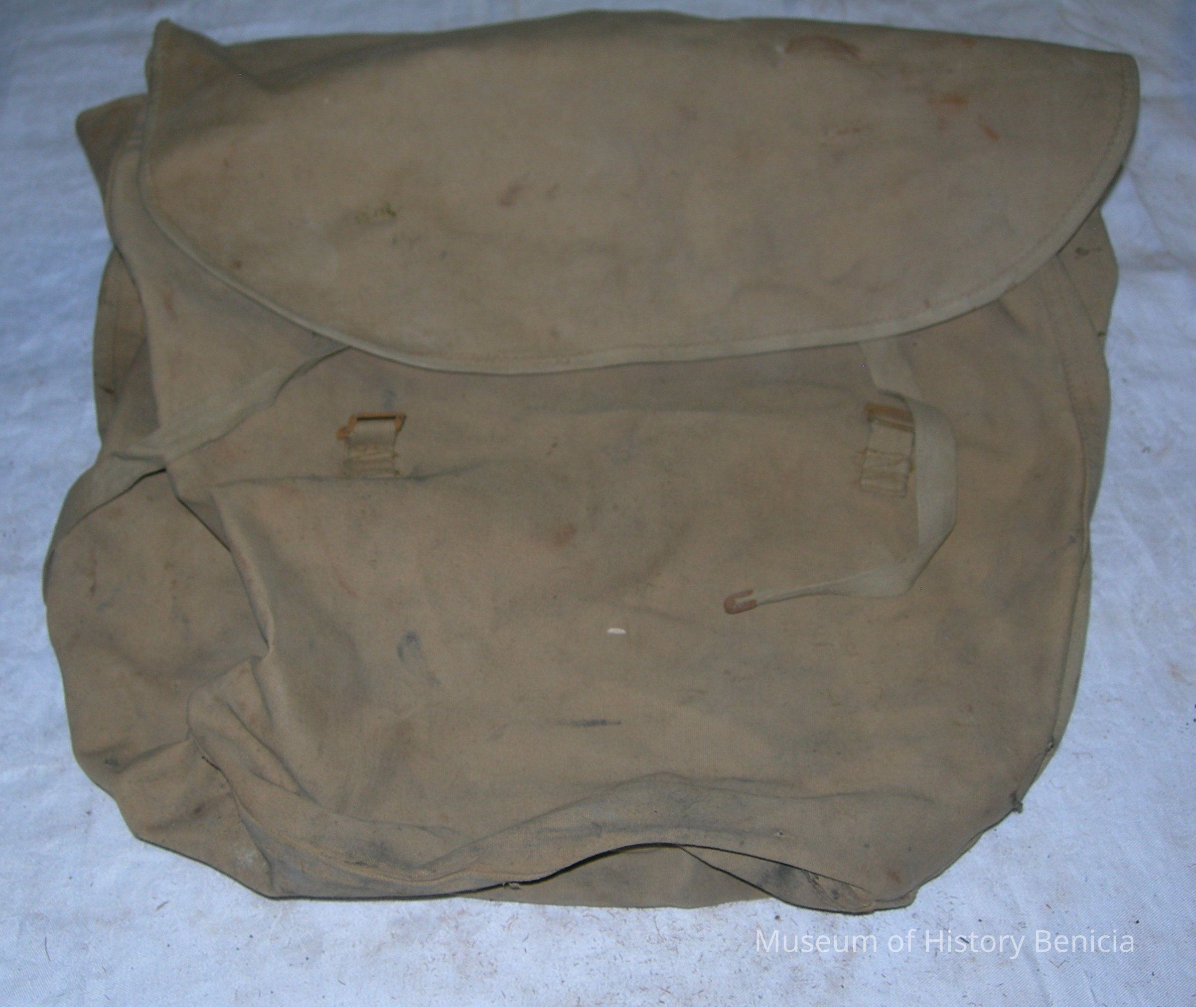Canvas backpack/knapsack with straps for carrying on a person's back dimensions: height: 18", width: 18", depth: 7"