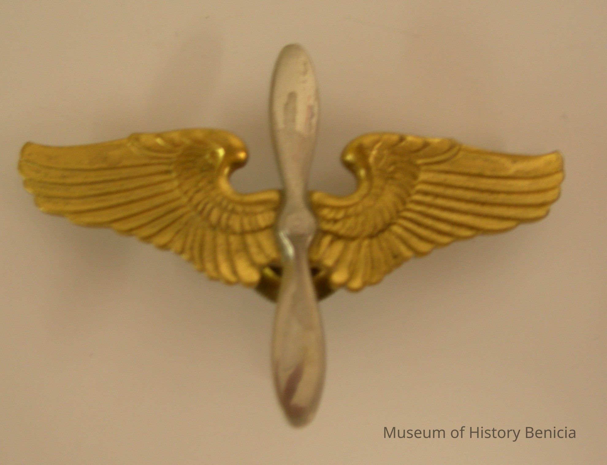 Cadet Cap Badge - Army Air Corps Large brass wings, silver color propeller, one screw on back attachment