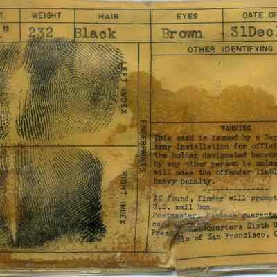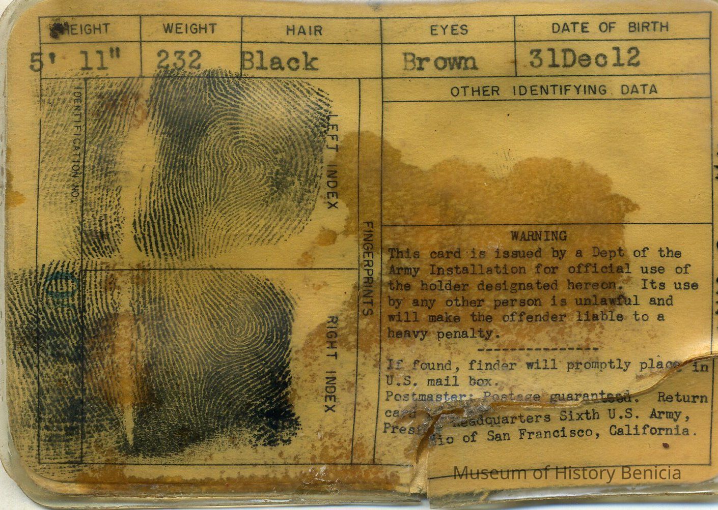 back: height (5'11"); weight (232); hair (black); eyes (brown); date of birth (31 Dec 12; fingerprints (left and right index fingers);