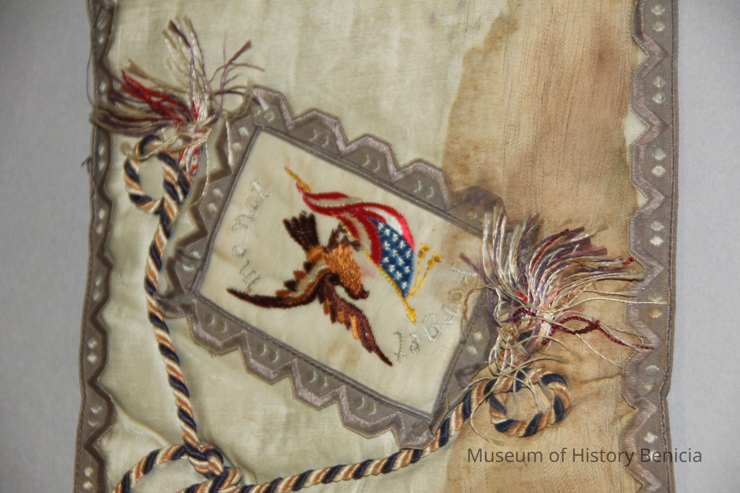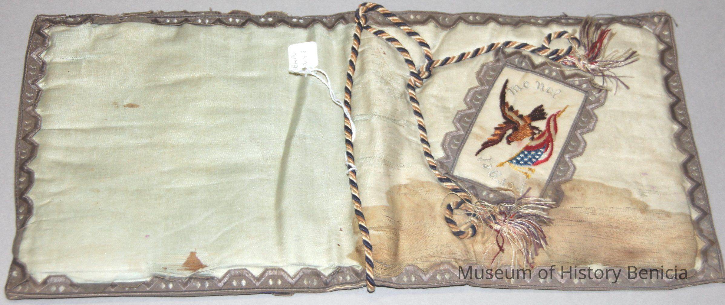 "Letter Keep" pouch with an eagle and American flag on the outside. Inside there is a pocket where letters from soldiers who were over seas during WWI were kept safe. Circa 1914-1919.Collection