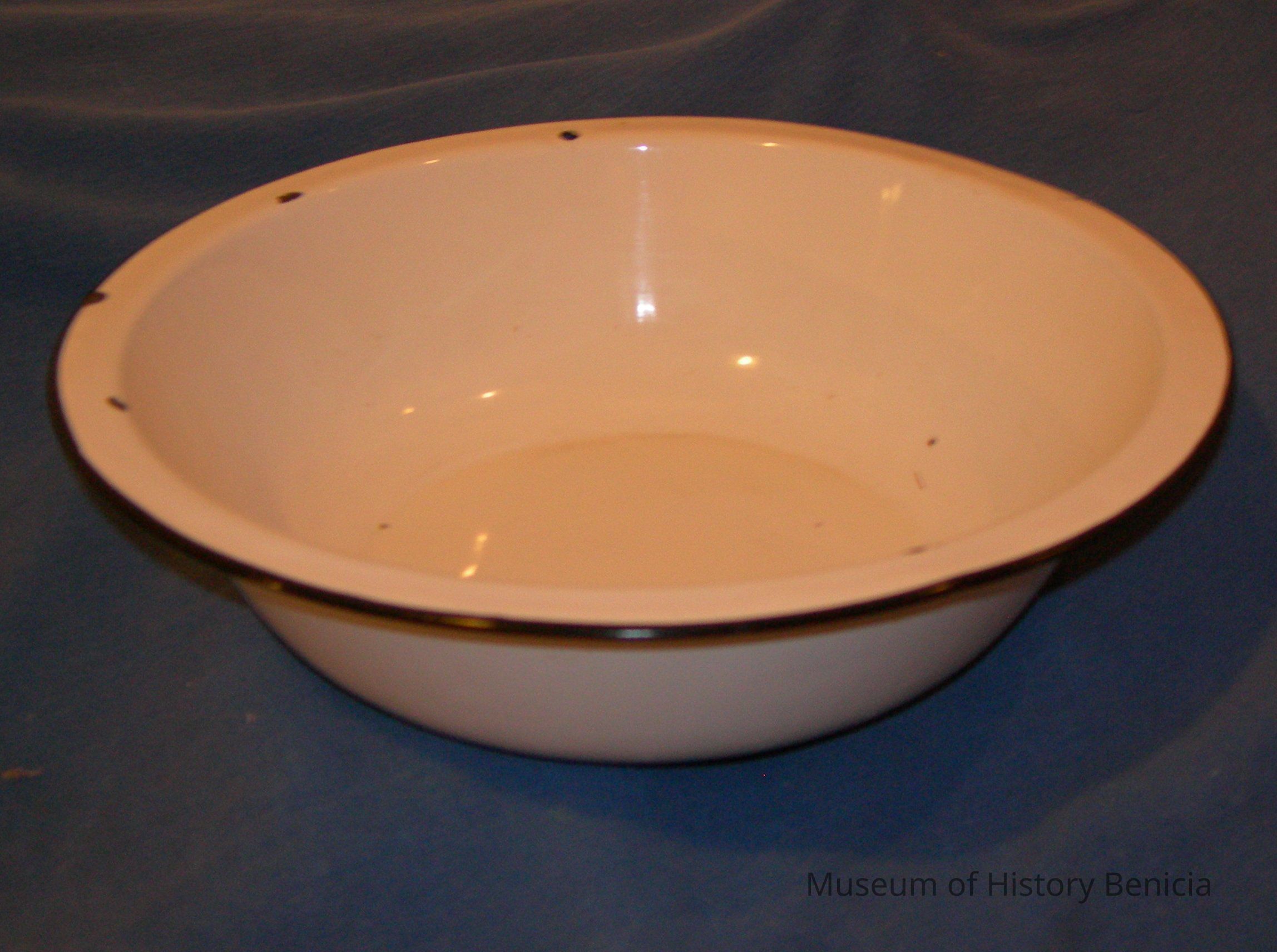 white enameled metal basin fits in holder in stand below: