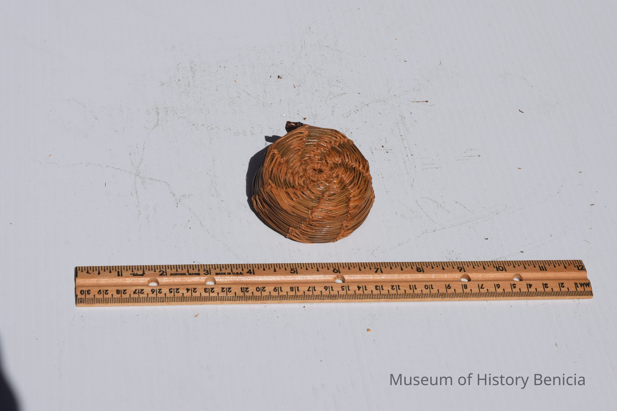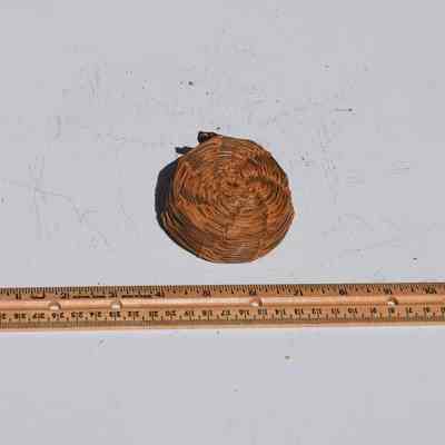 This is the smallest of the three baskets. It is just 3" across. It is also the most rustic. The ends of the twigs used to weave the basket still have bark on them.Collection