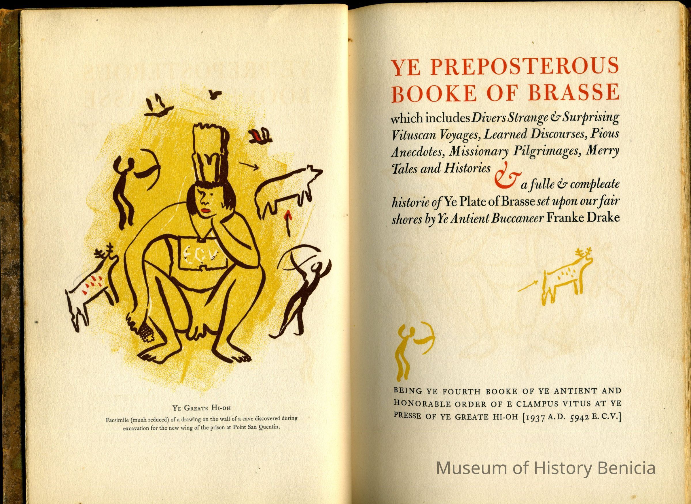 This is a book of the E. Clampus Vitus society. It tells several fictional tales. One of the tales is about the discovery of a brass plate at Drake's Bay concerning Sir Francis Drake. It was a hoax.