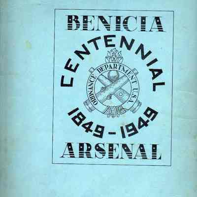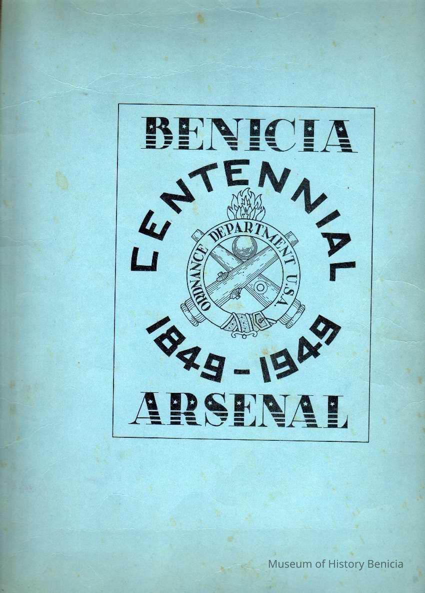 Commerative booklet celebrating Benicia Arsenal's centennial. Inside are articles and images of the arsenal.