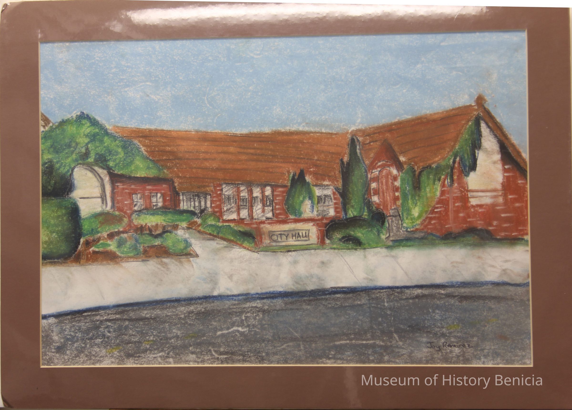 "Benicia City Hall" (old high school building) chalk drawing done by Joy Ramirez in 1995, a Benicia Middle School student matted and mounted on foamcoreCollection
