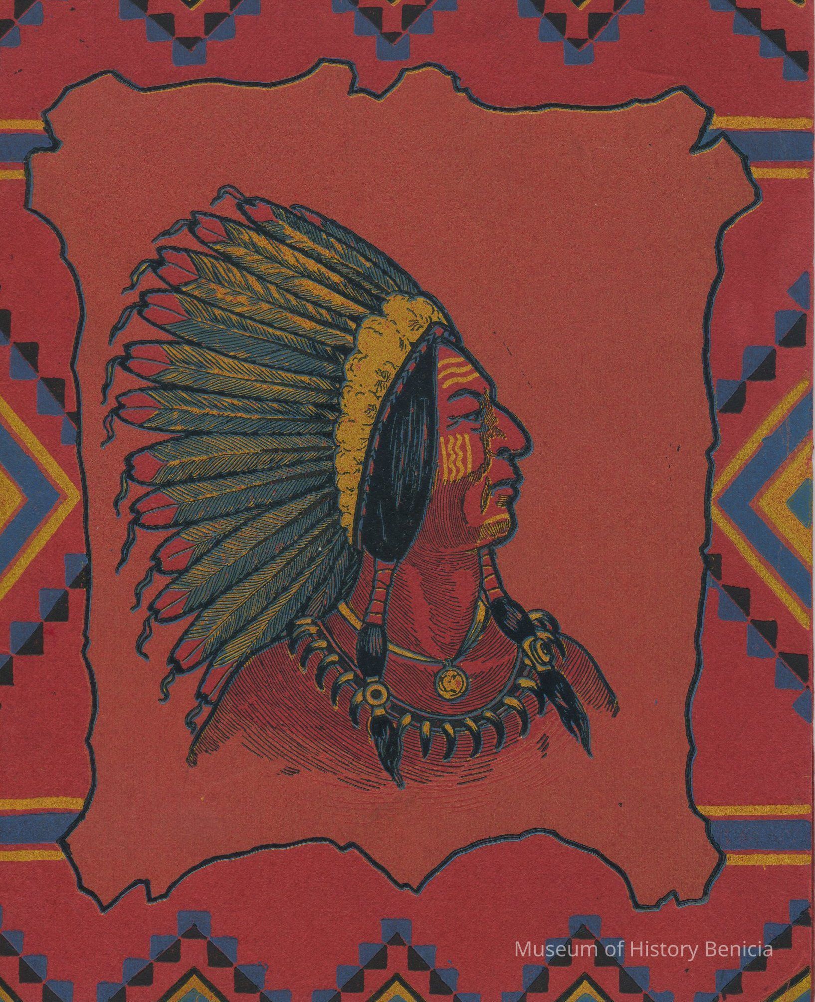 booklet 4-1/4" b 5-1/4" red heavy cover with an Indian Chief in headdress on the cover; two pages printed both sides inside.Collection