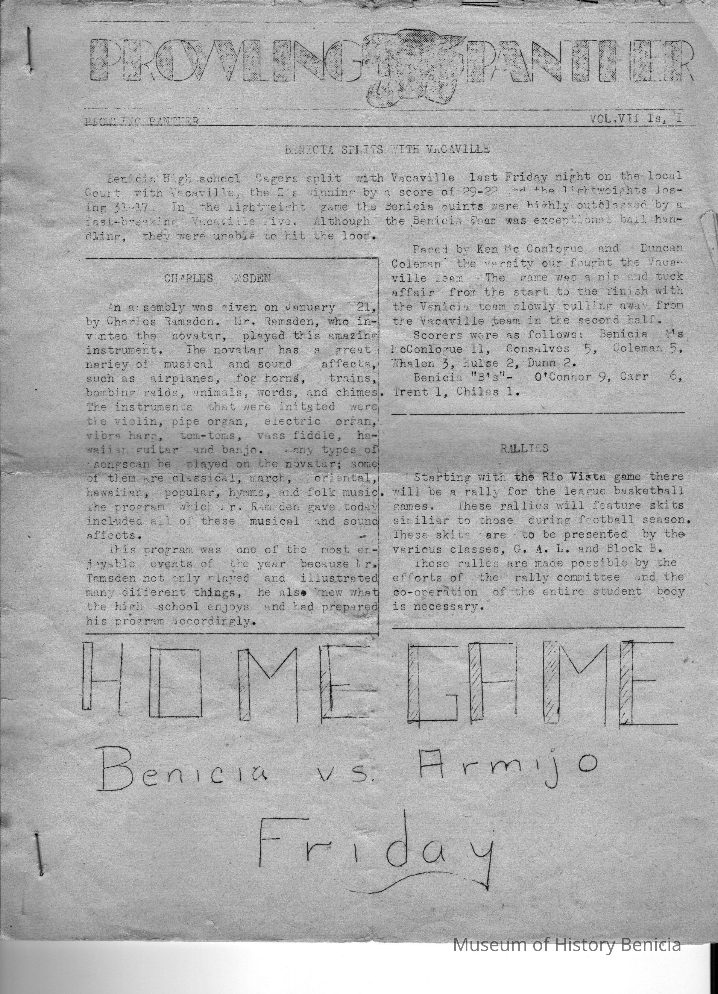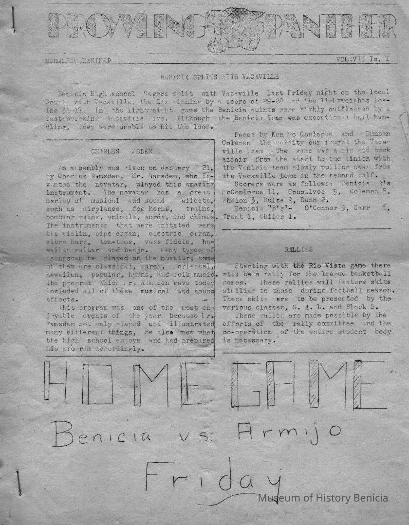 Benicia High School Prowling Panther newspaper, January or February, 1948