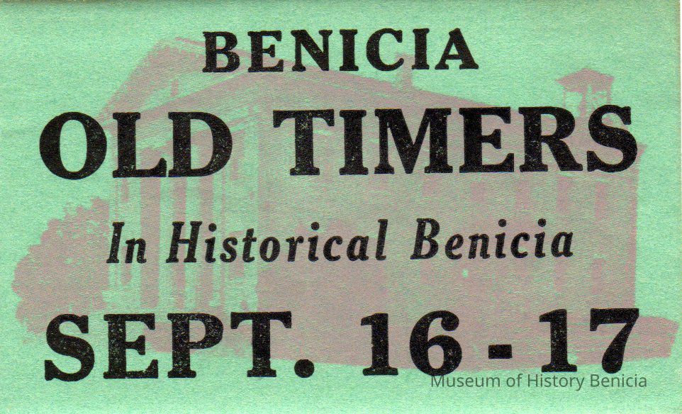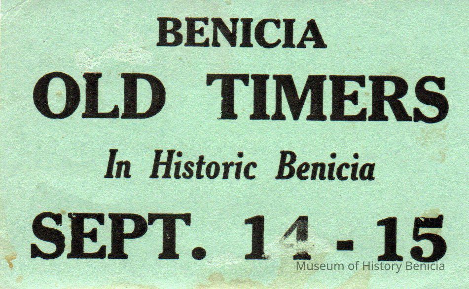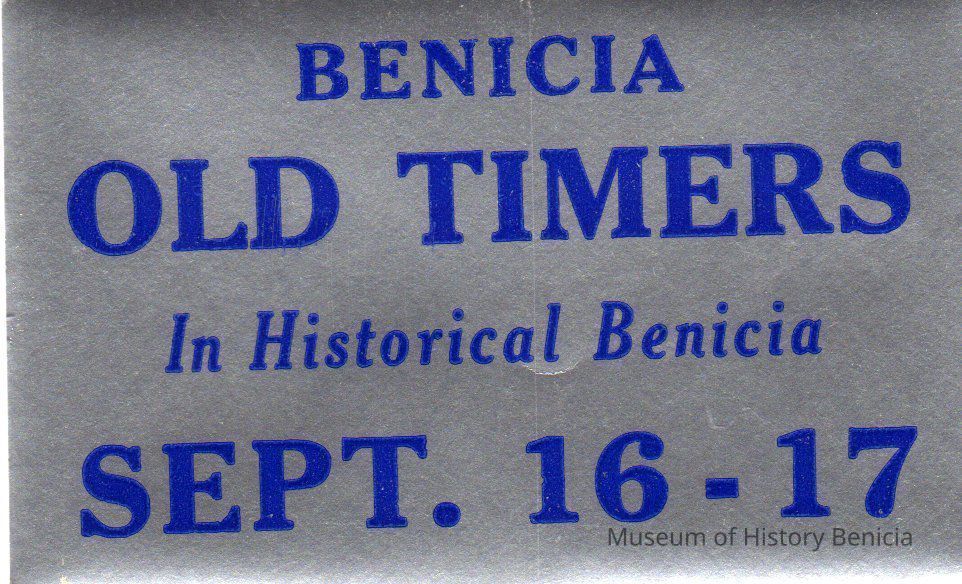 Stickers read "Benicia Old Timers In Historical Benicia Sept 14-15 or 16-17"Collection