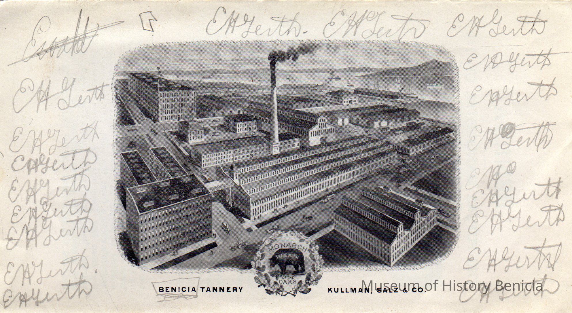 The front page reads " This folder calls particular attention to the details which make Benicia the logical manufacturing site of the Pacific Coast. The country adjacent to the City of Benicia is admirably adapted for poultry raising and dairying, which industries have been steadily growing in this locality. All information relative to securing factory sites or land for stock and poultry raising will be promptly furnished by THE BENICIA BOARD OF TRADE, Benicia, Calif.Collection