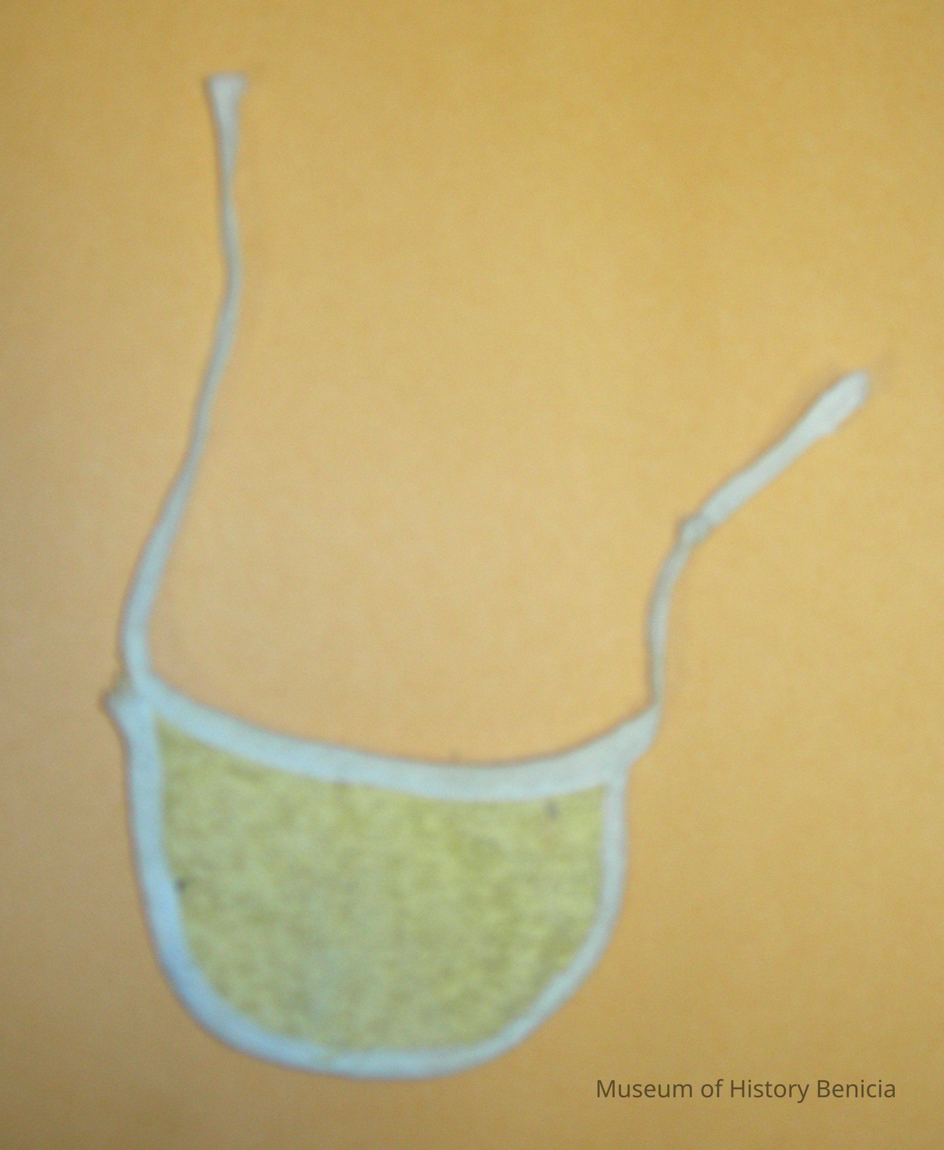 yellow terrycloth bib with light yellow trim all around and ties