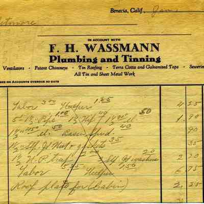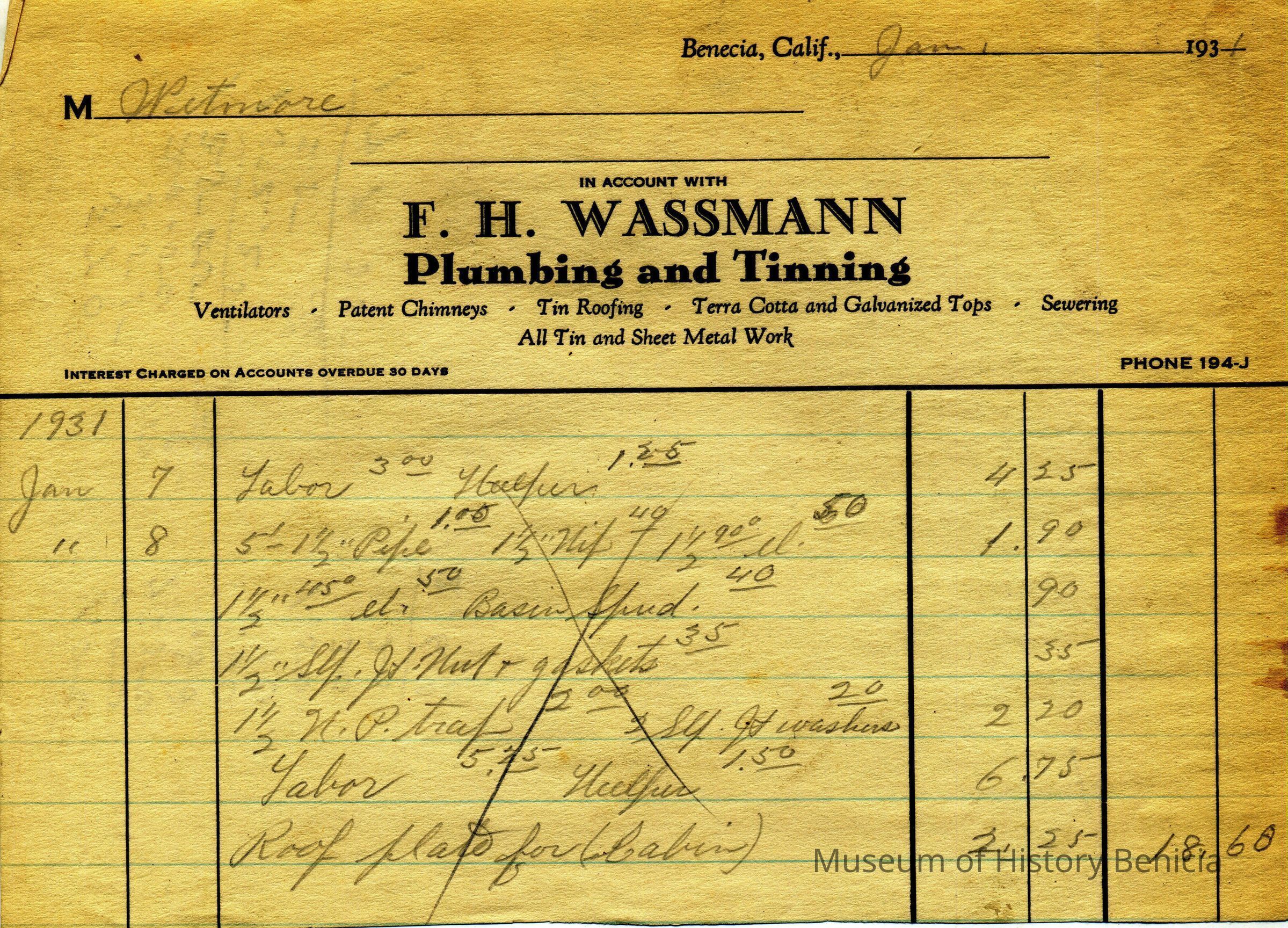 This is a bill for plumbingsevices in 1931 by Frank Wassmann against the Wetmores.
