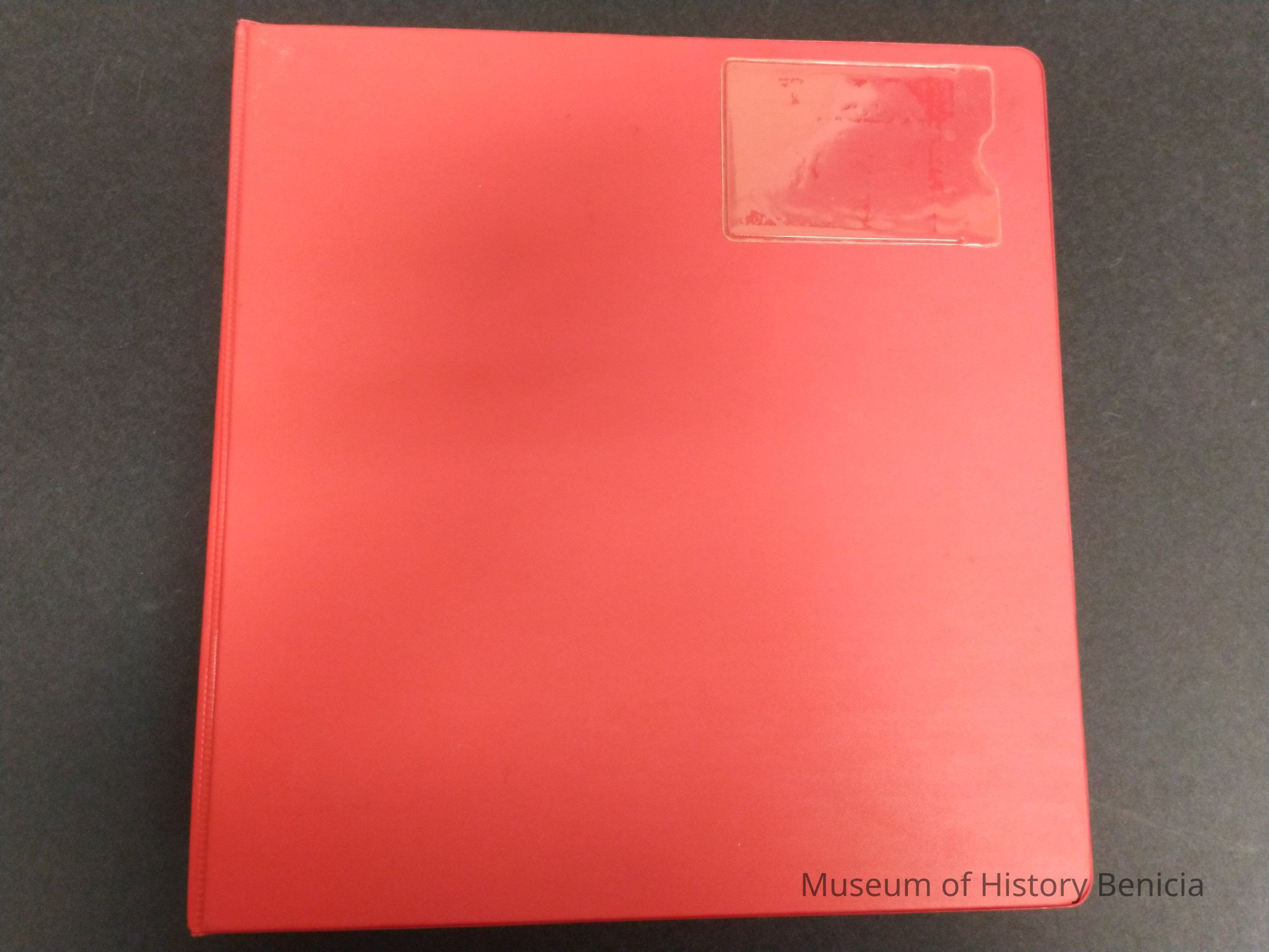 Red plastic binder with Minutes from the meetings of the Benicia Fire Dept.