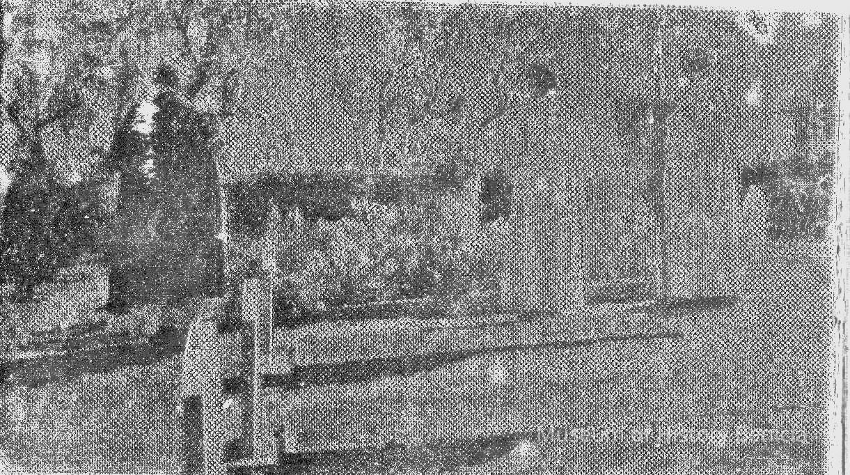 Wood block with imprint of a photograph of Priests at St. Dominic's Sisters' cemetery. Photograph taken by Lenior Miller.