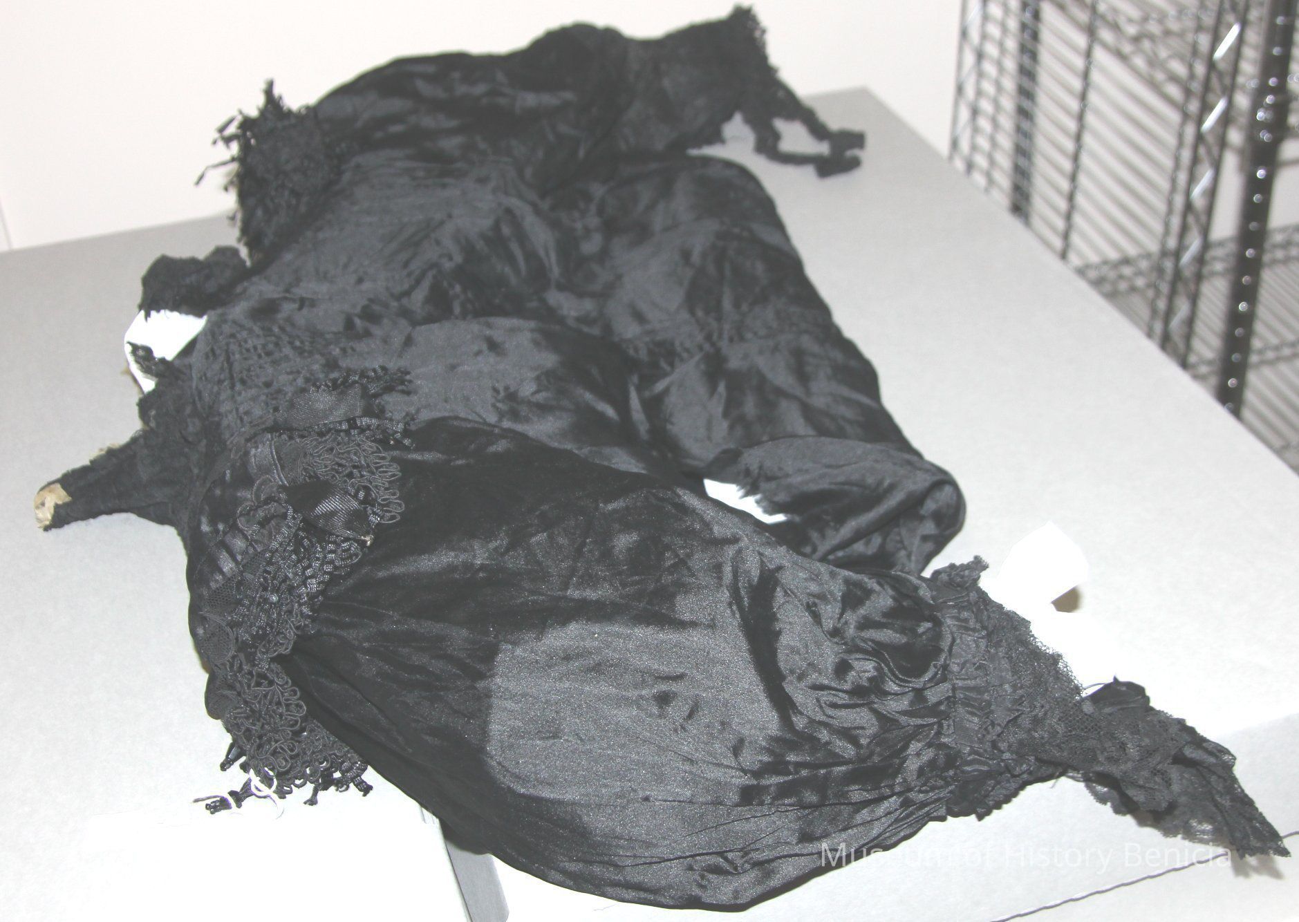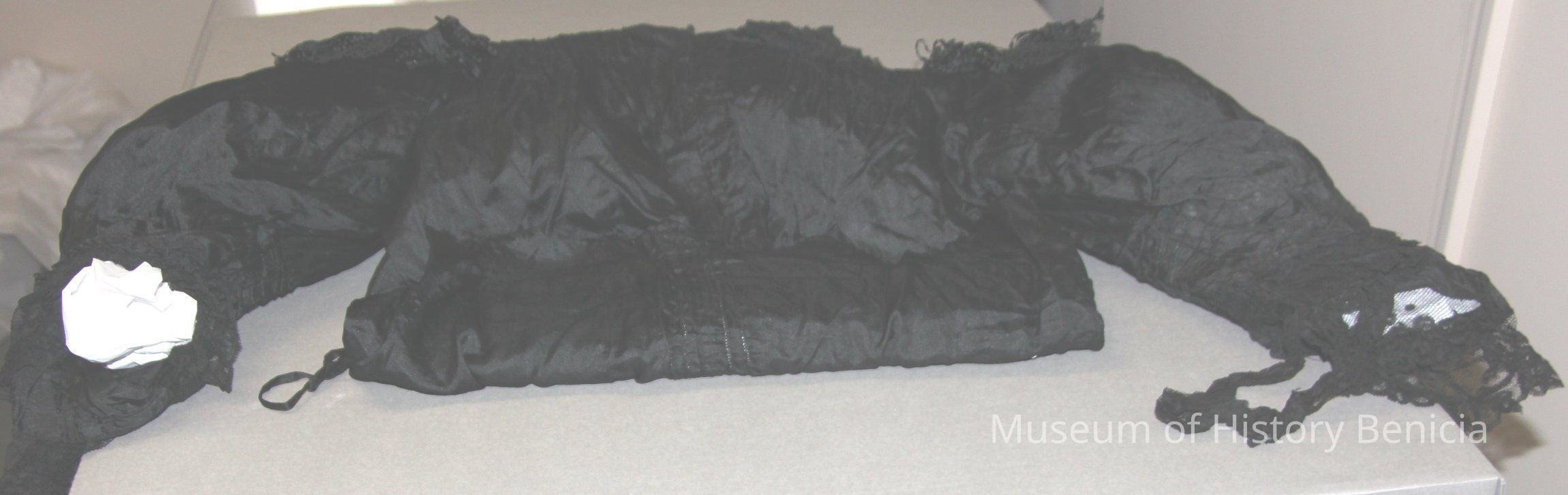 Blouse ladies with lace trim on sleeves and upper shoulders. High neckline with cream colored trim. Inventory number 1705