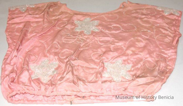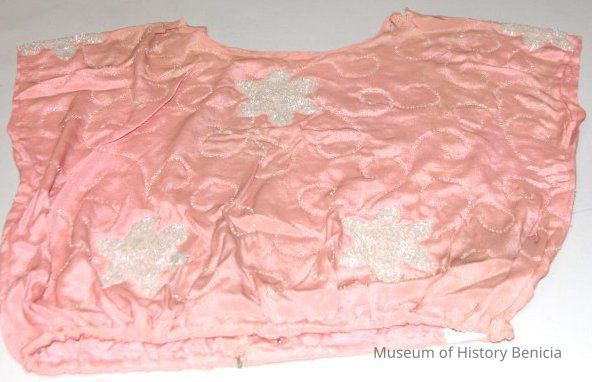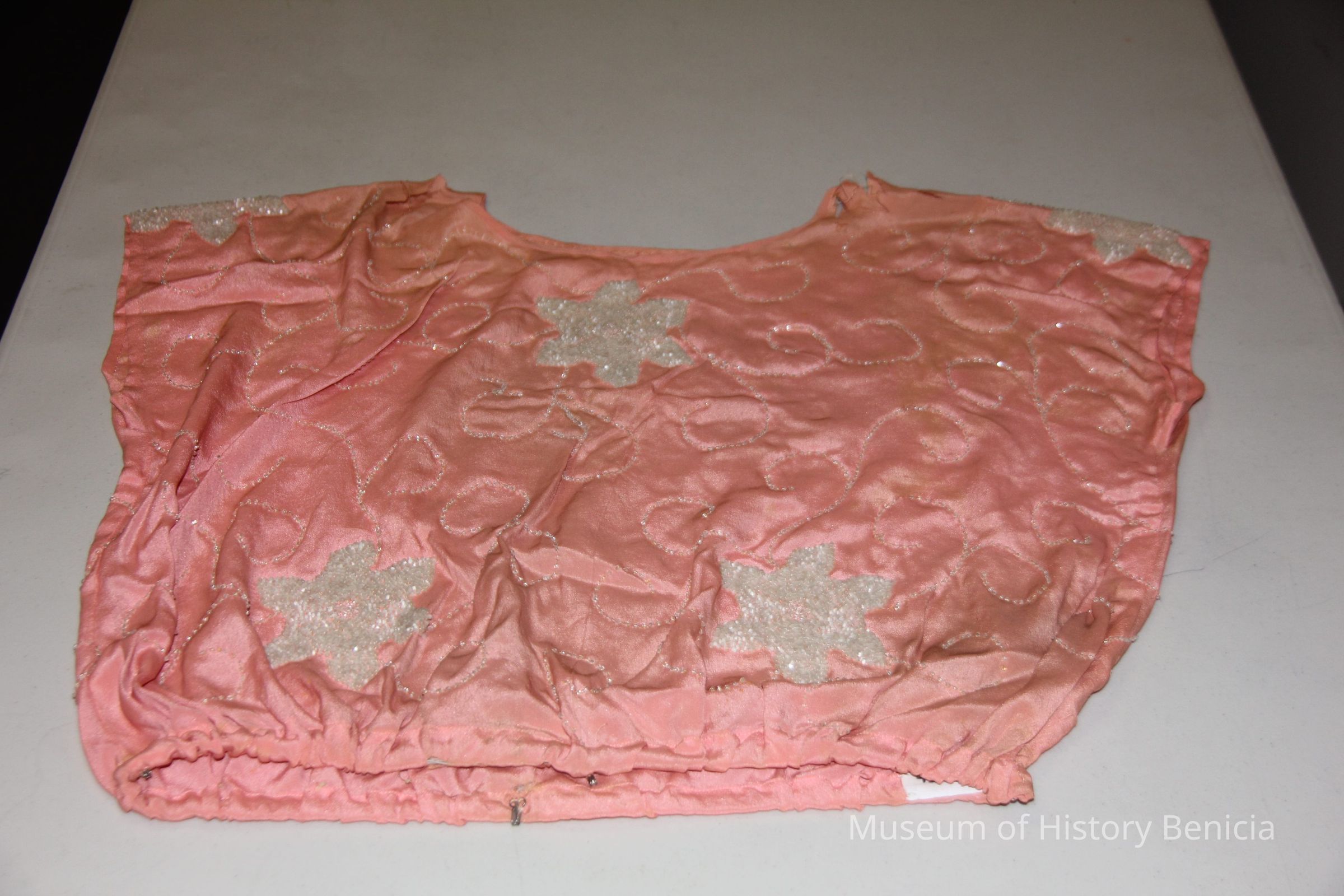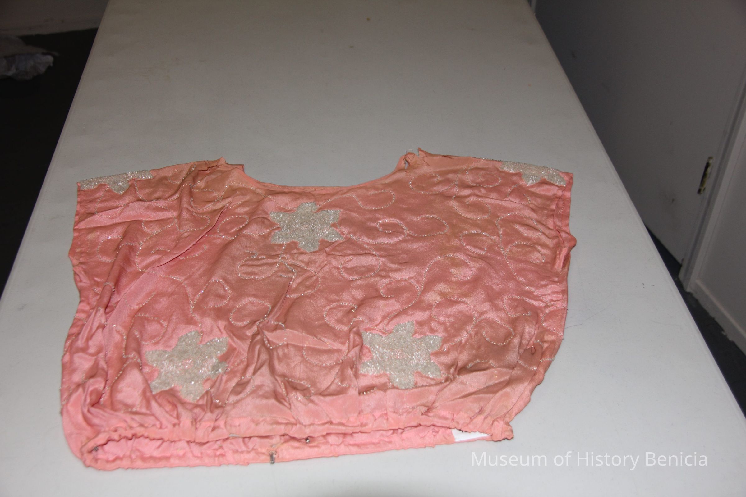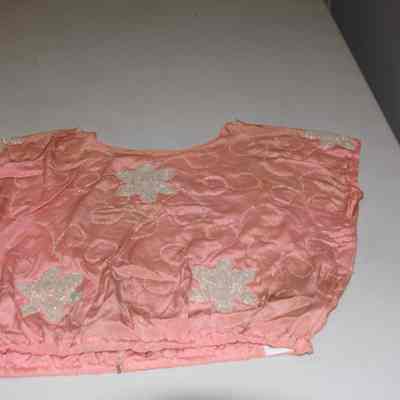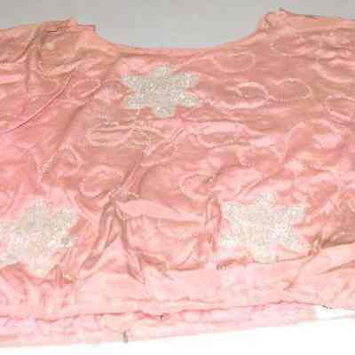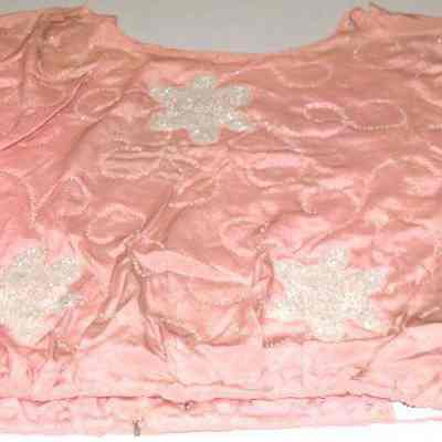 Beaded pink silk blouse. Beads are in flower pattern