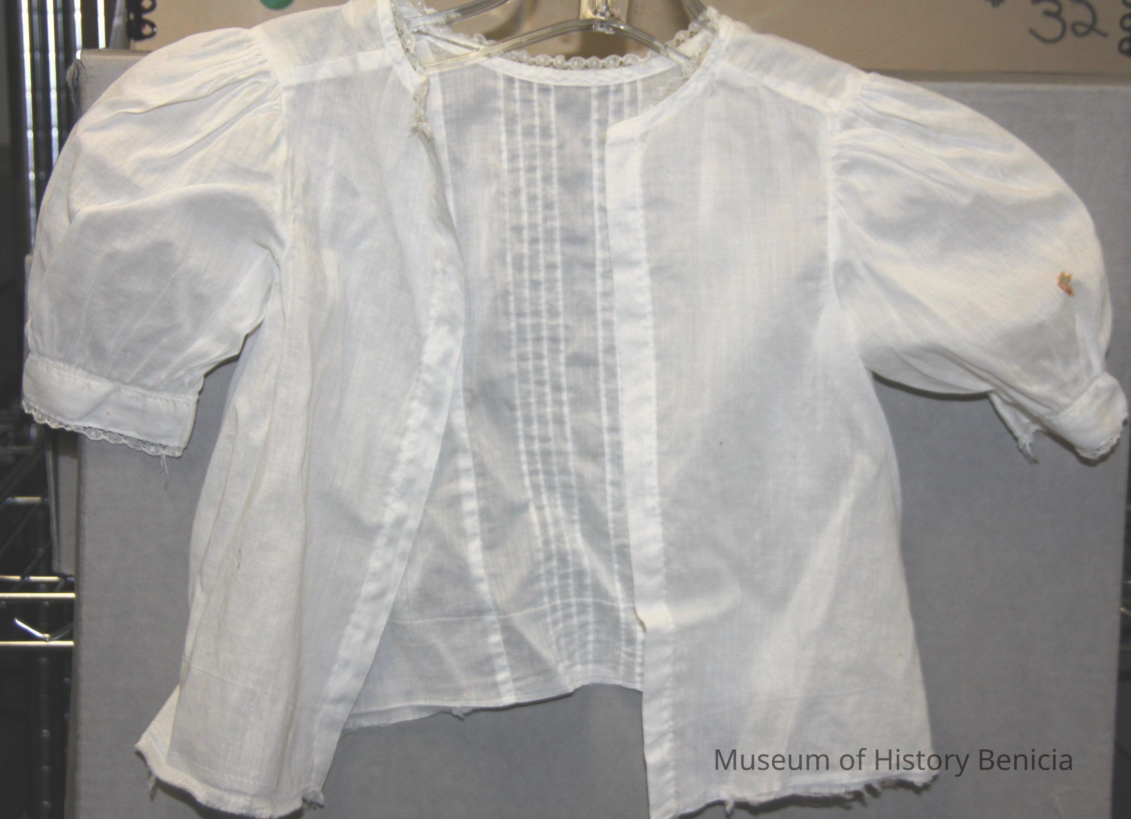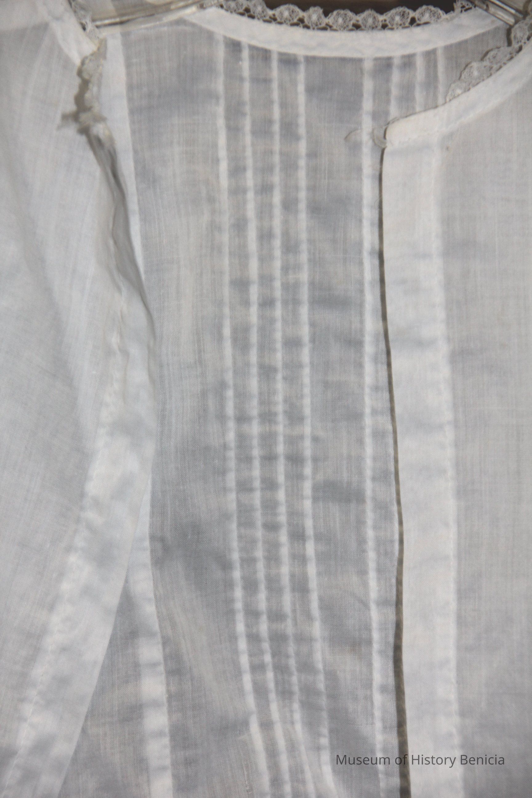 White blouse top that was possibly unfinished dress. Short sleeve with lace. No buttons or button holes.