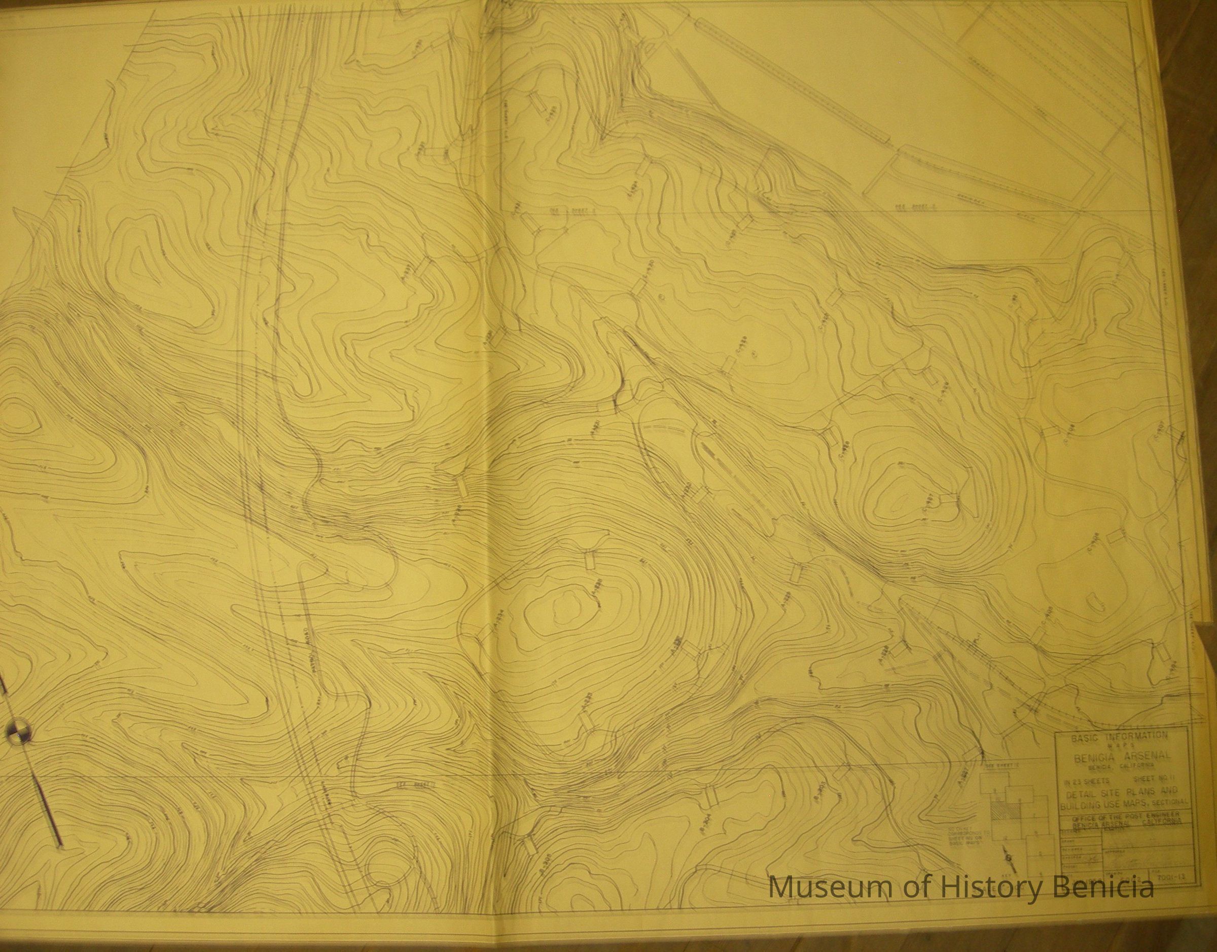 Basic Information Map - Benicia Arsenal / Sheet no. 11 of 23 Drawing 6002 General Storm Drainage Map with Purple Graphics size: 37" x 52"
