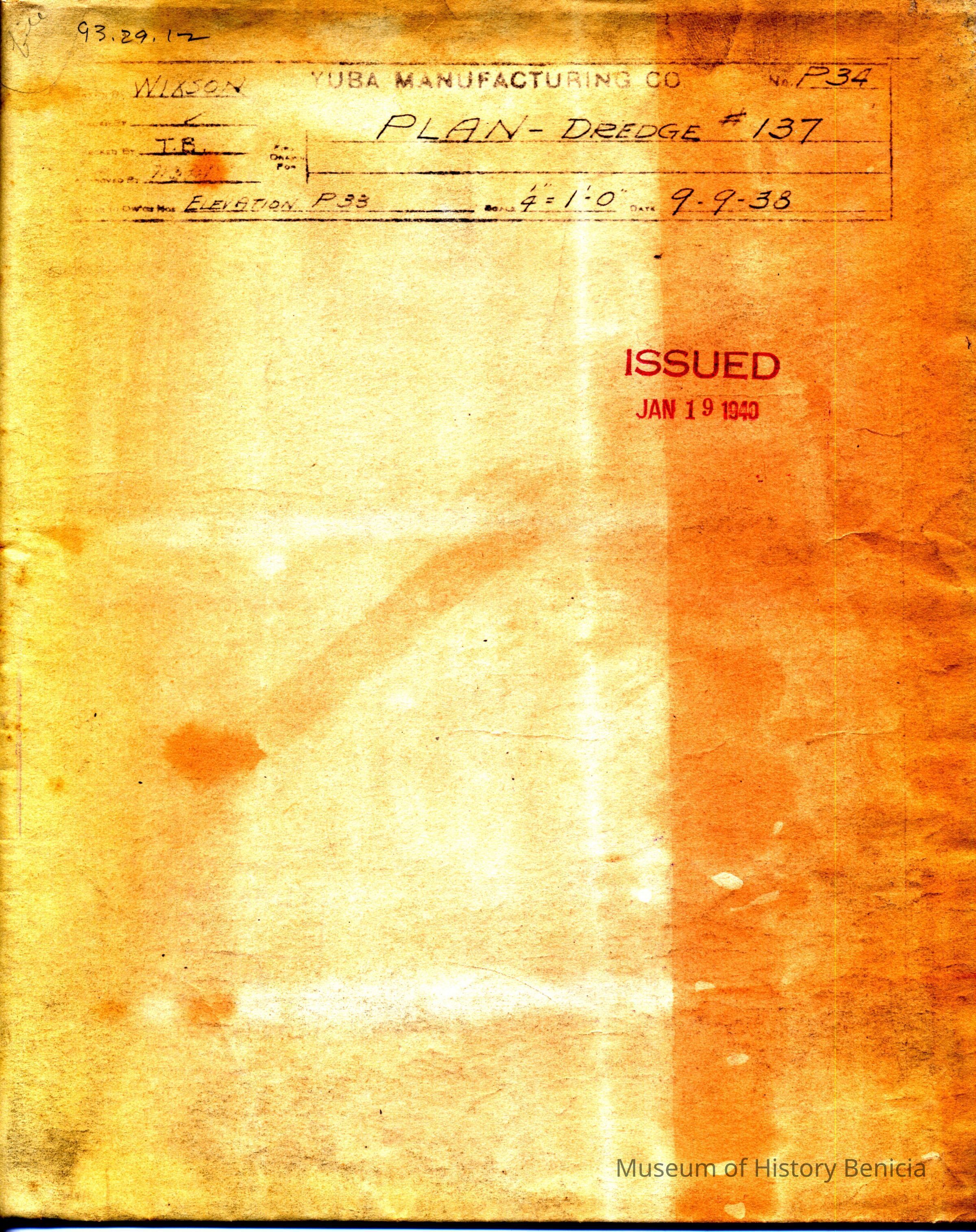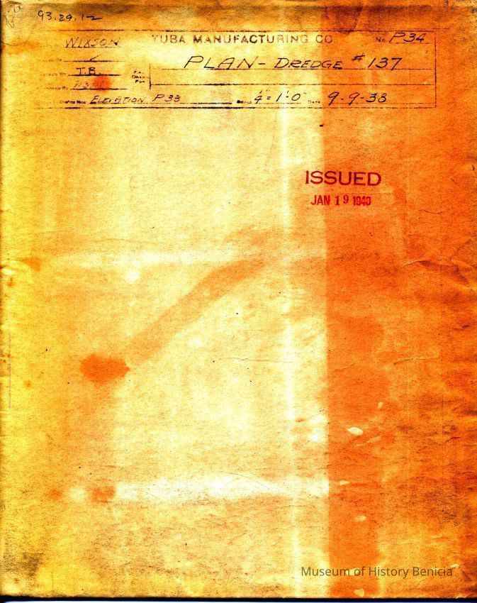 Plan sheet for Yuba bucket gold dredge 137 drawn by Wixson. (Scale 1/4" = 1')