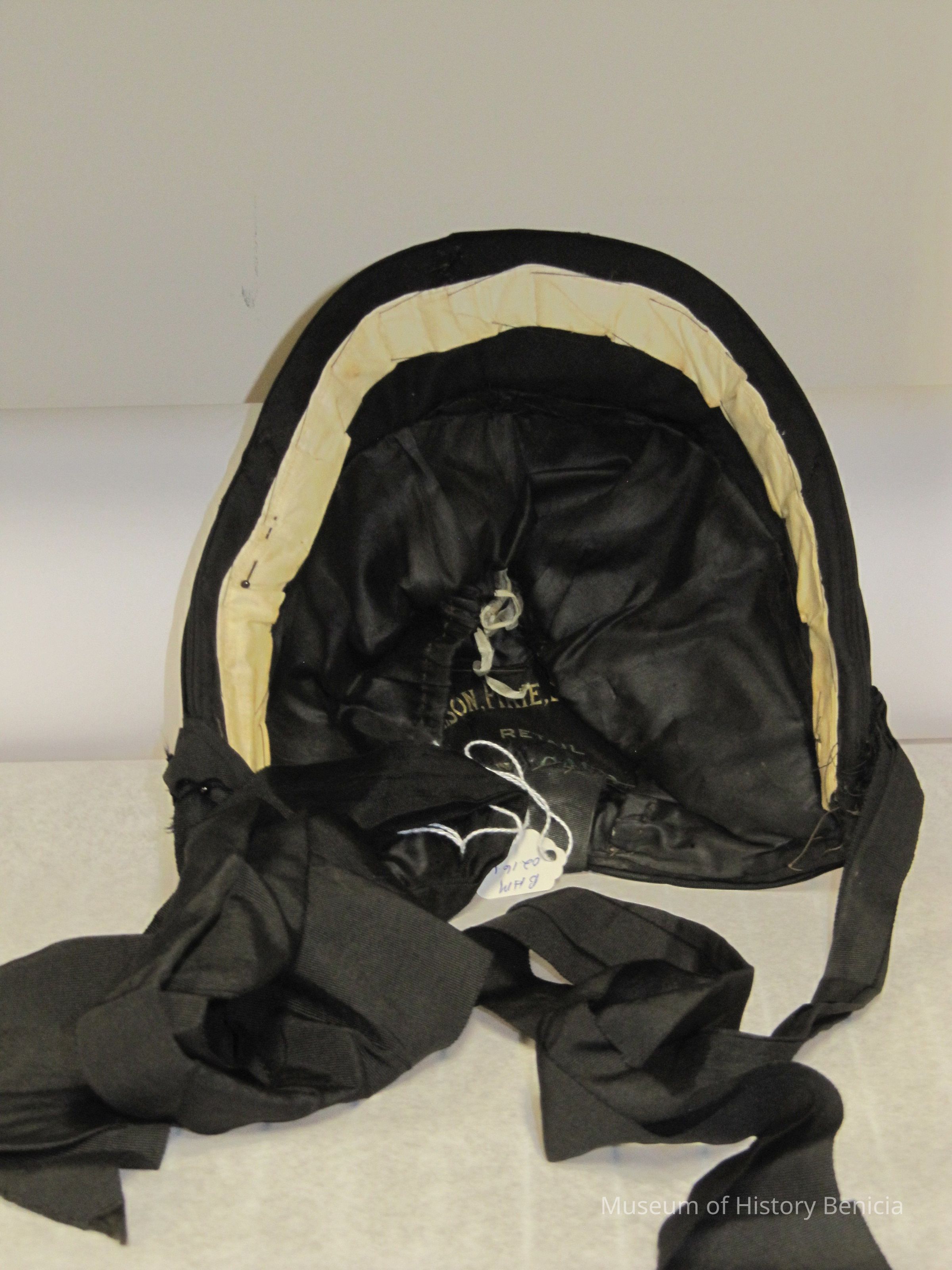 Black widow's bonnet. "Carson, Pirie, Scott & Co. - Retail" in gold lettering on inside