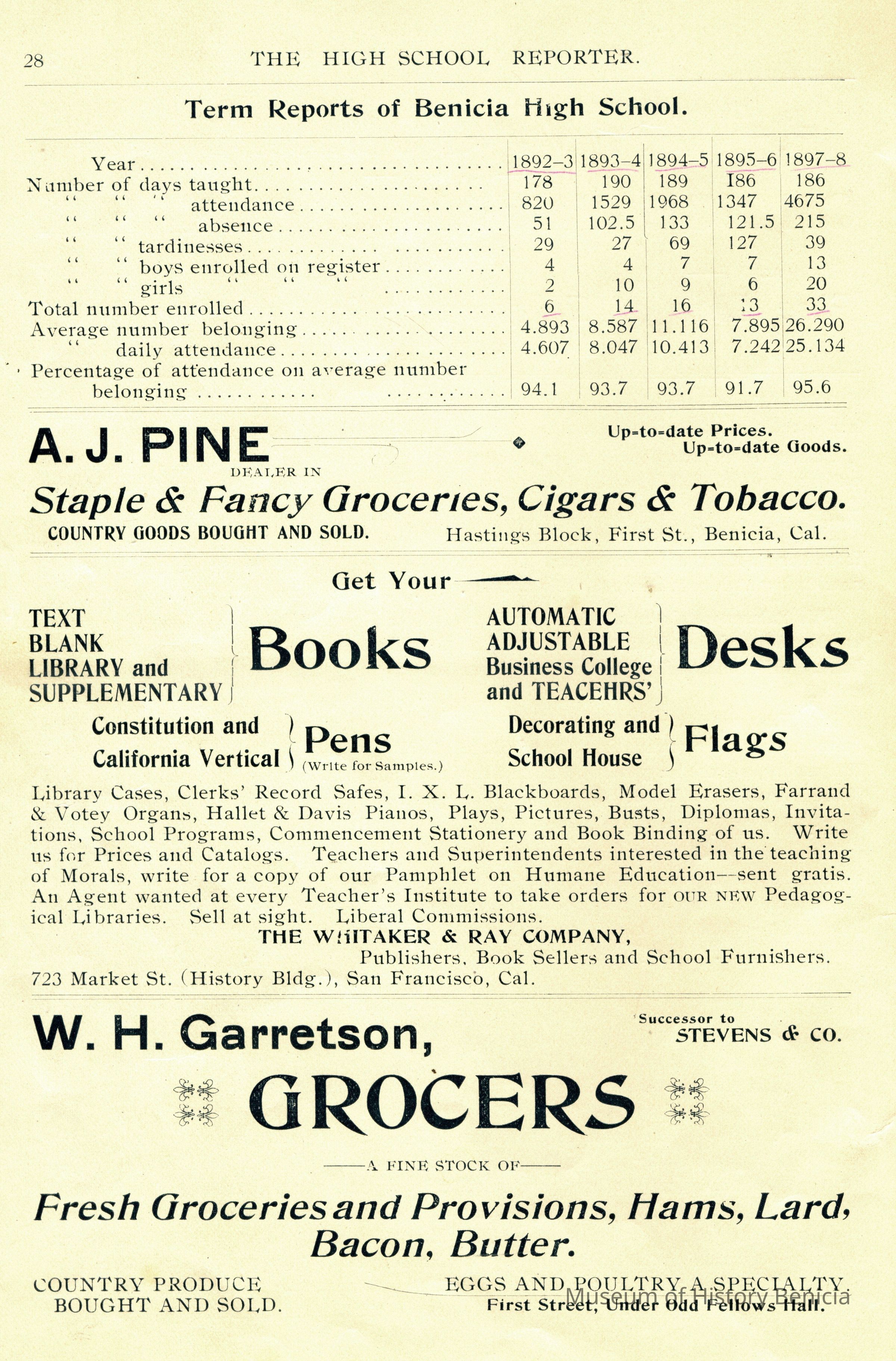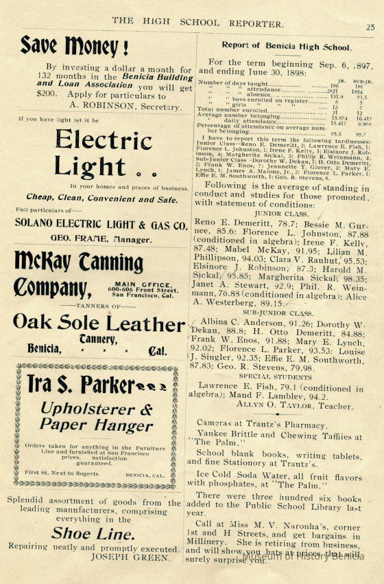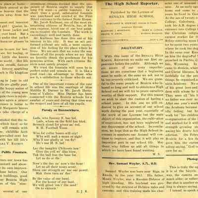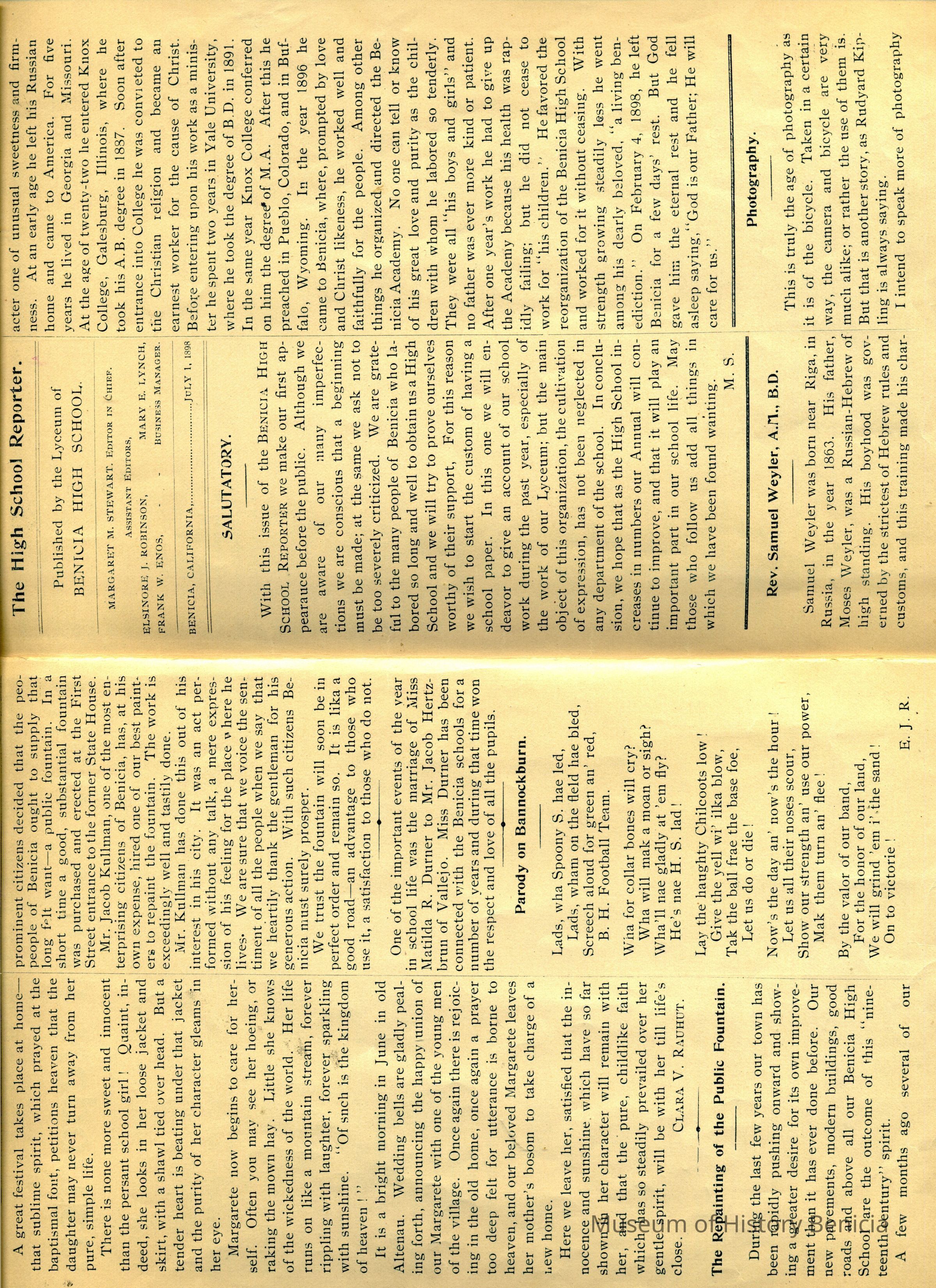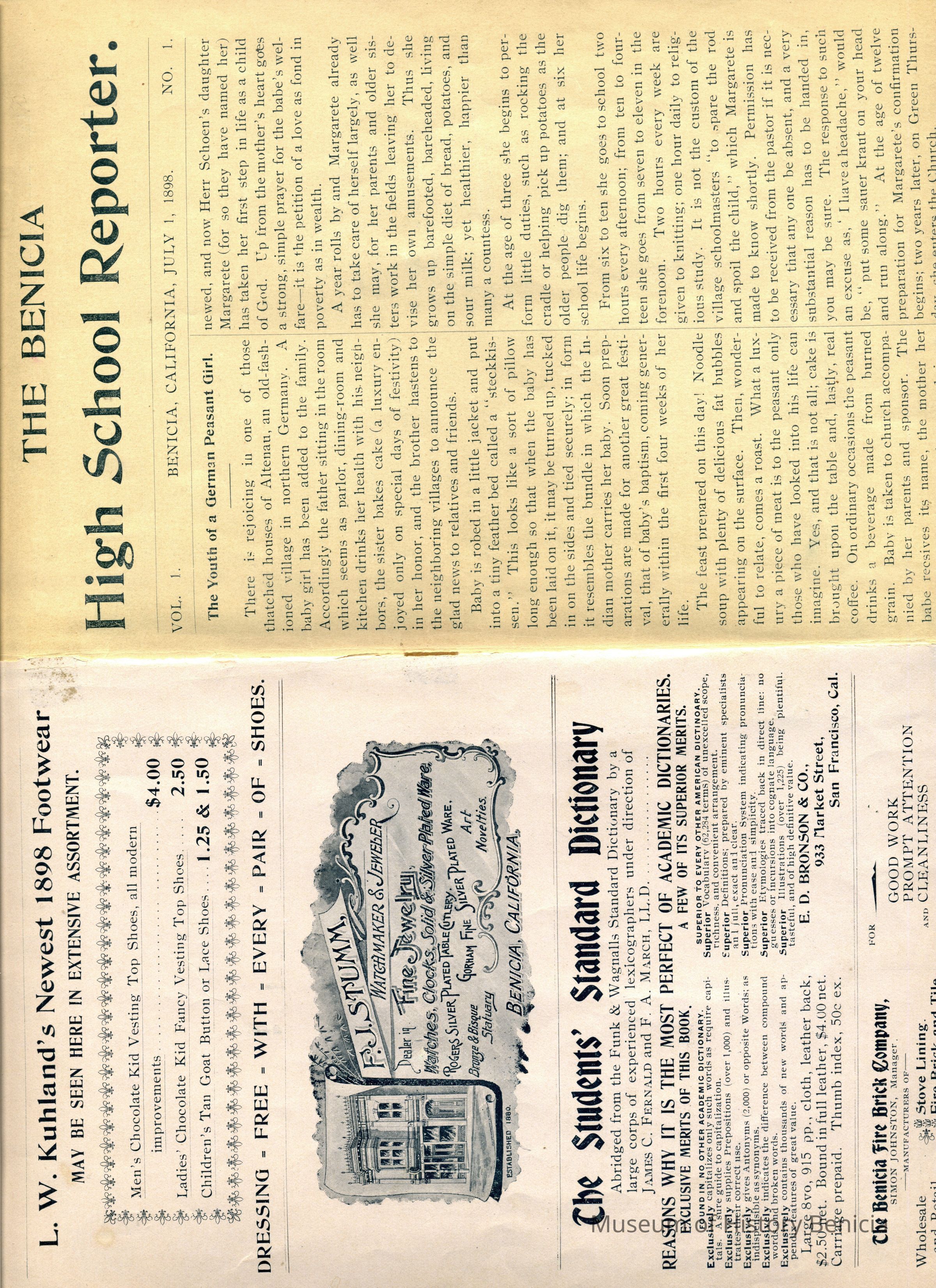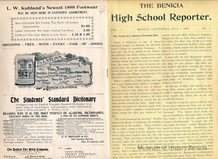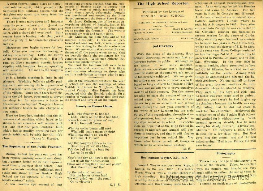 "Benicia High School Reporter / Benicia California / July, 1898"