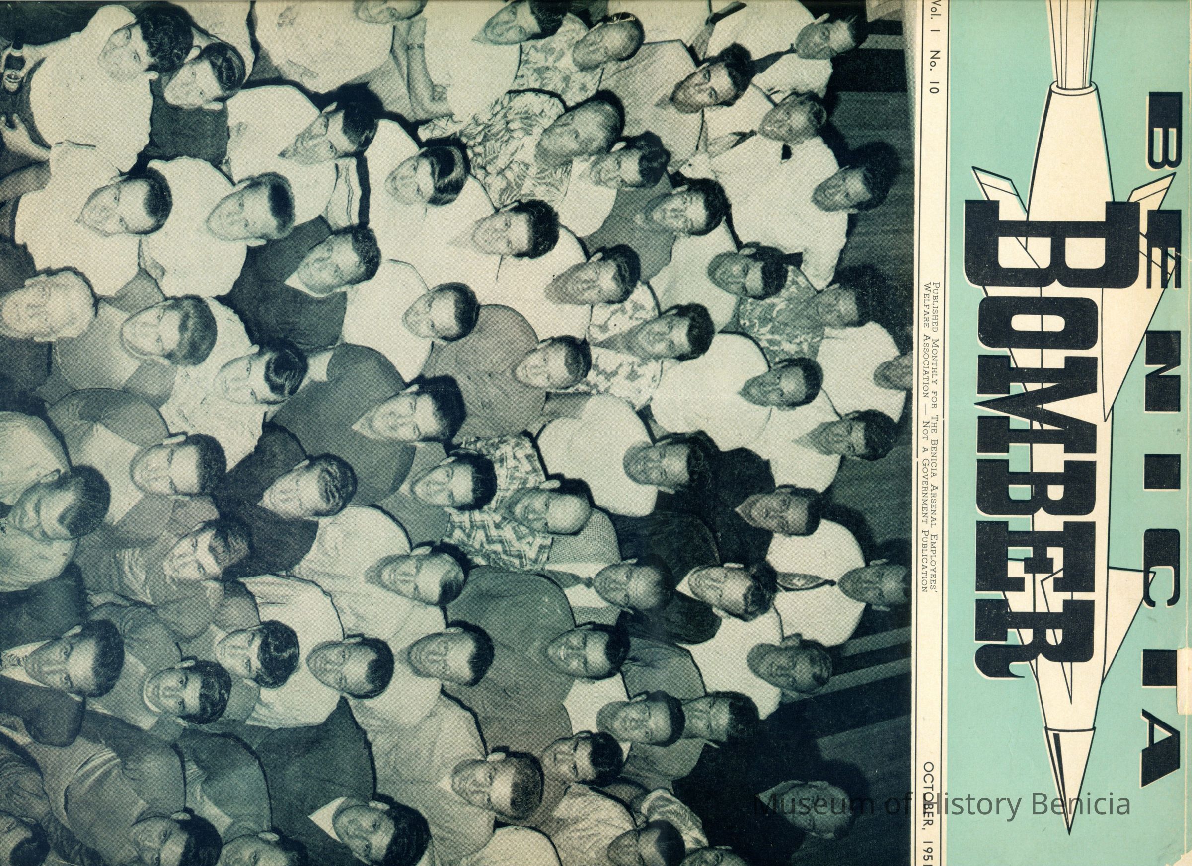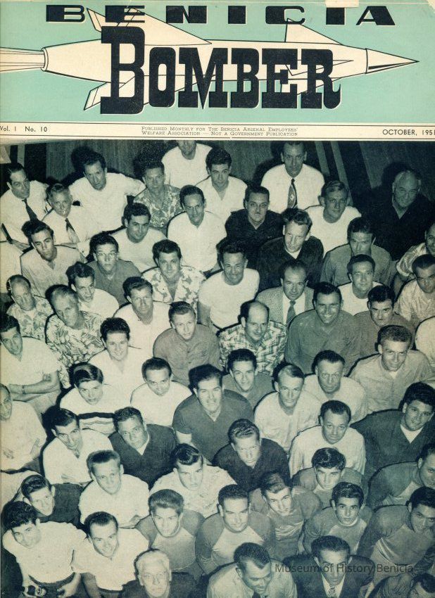 Bound book of copies of "Benicia Arsenal Magazine:" 1/51, 2/51, 4/51, 5/51, 6/51, 7/51, 8/51, 9/51, 10/51. "Benicia Bomber Magazine 11/51, 12/51, 1/52, 2/52, 3/52, 4/52, 5/52, 6/52, 7/52, 8/52, 9/52, 10/52, 11/52, 12/52, 2/53, 3-4/53.Collection