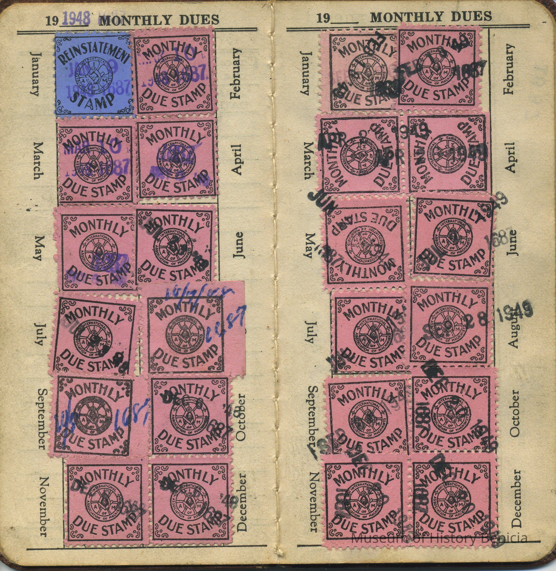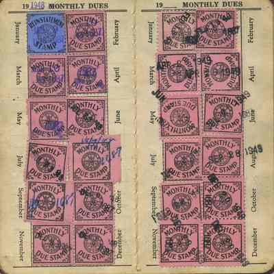 also contains pages with stamps for dues payments from
