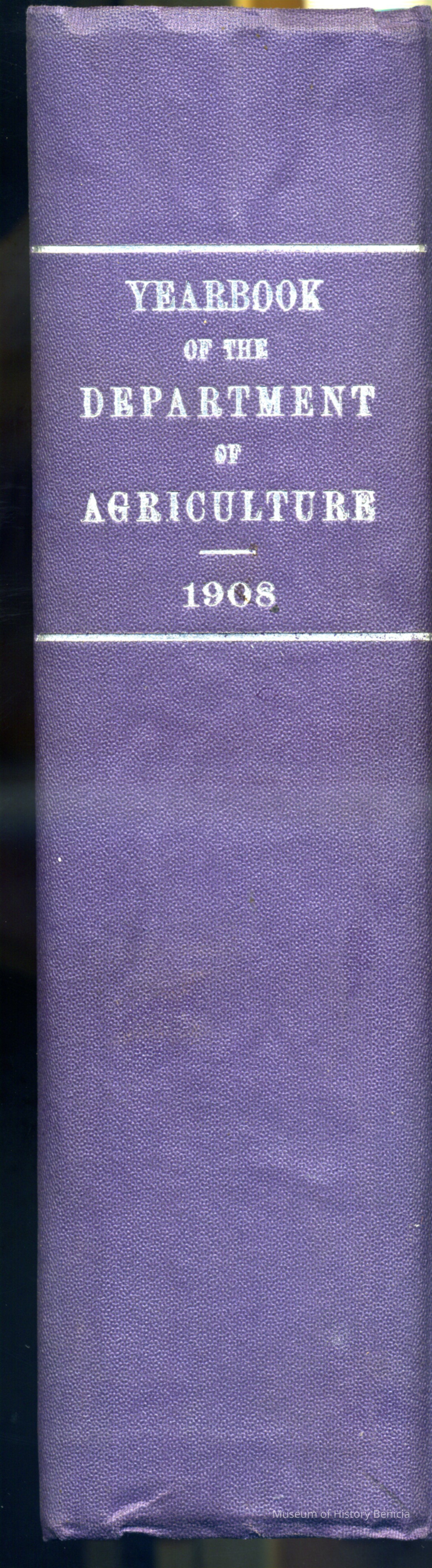 This is the yearbook of the U.S. Department of Agriculture for 1908. It contains some very nice color plates of birds, fruits, photos of lemon oil production, maps of temperature variations, and photos of Calaveras Big Trees.Collection
