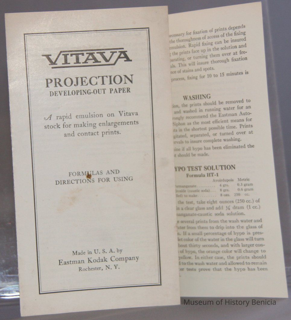 Booklet called "Vitava Projection Developing-Out Paper". Has formulas and directions for using their developing paper.