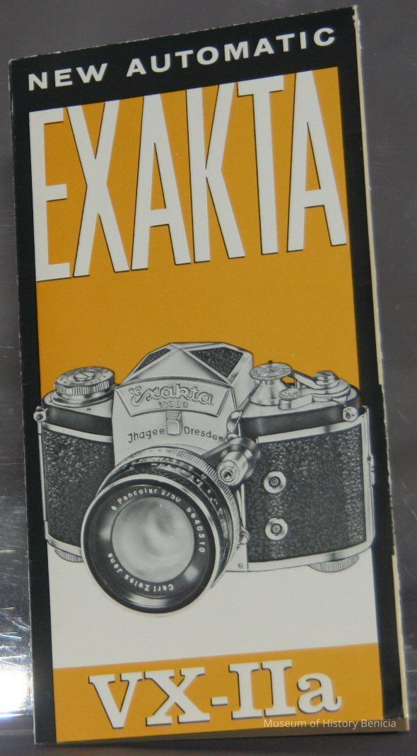 Brochure from Wall Street Camera Exchange in response to letter from Joe Henderson to them. Dated 03/23/1963 asking for information on Exacta camera. New Automatic Exacta VX-IIa. 8 pages both sides when folded out.Collection