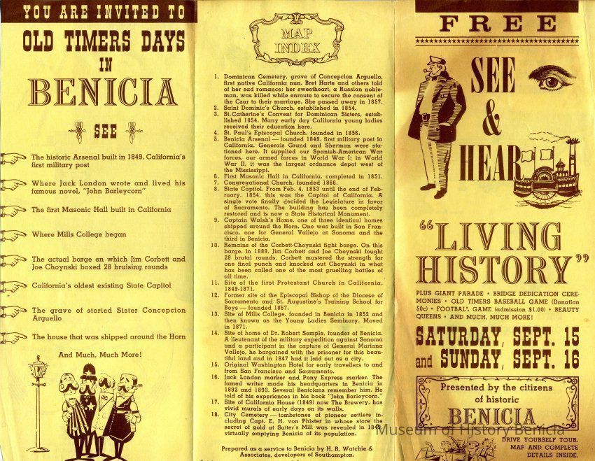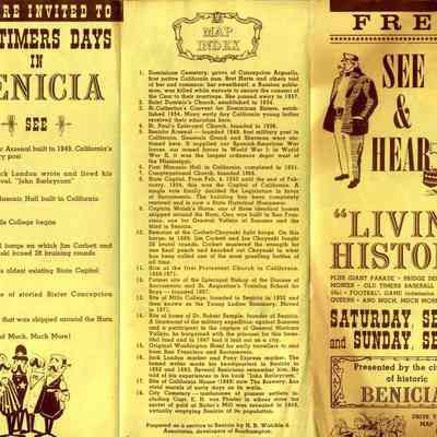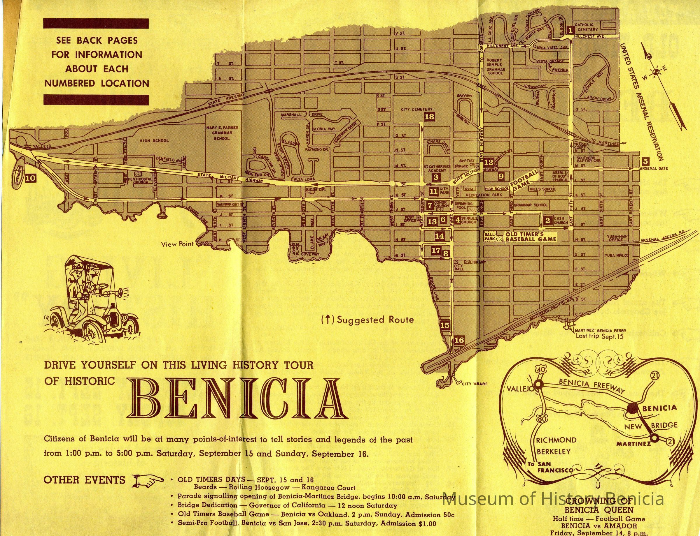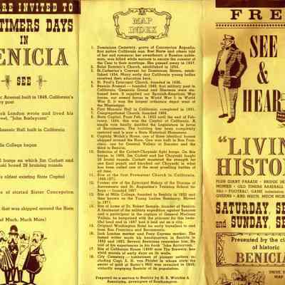 Pamphlet on Benicia's historical sites. A drive yourself tour. In conjuction with Old Timer's Days.