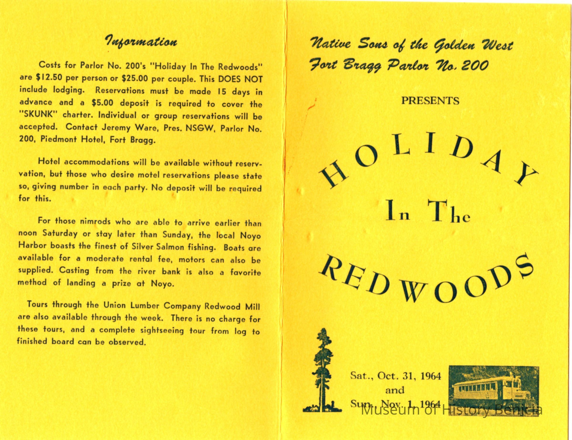 Booklett on Native Sons of the Golden West Fort Bragg No 200 dated 1964 Holiday in the Redwoods.