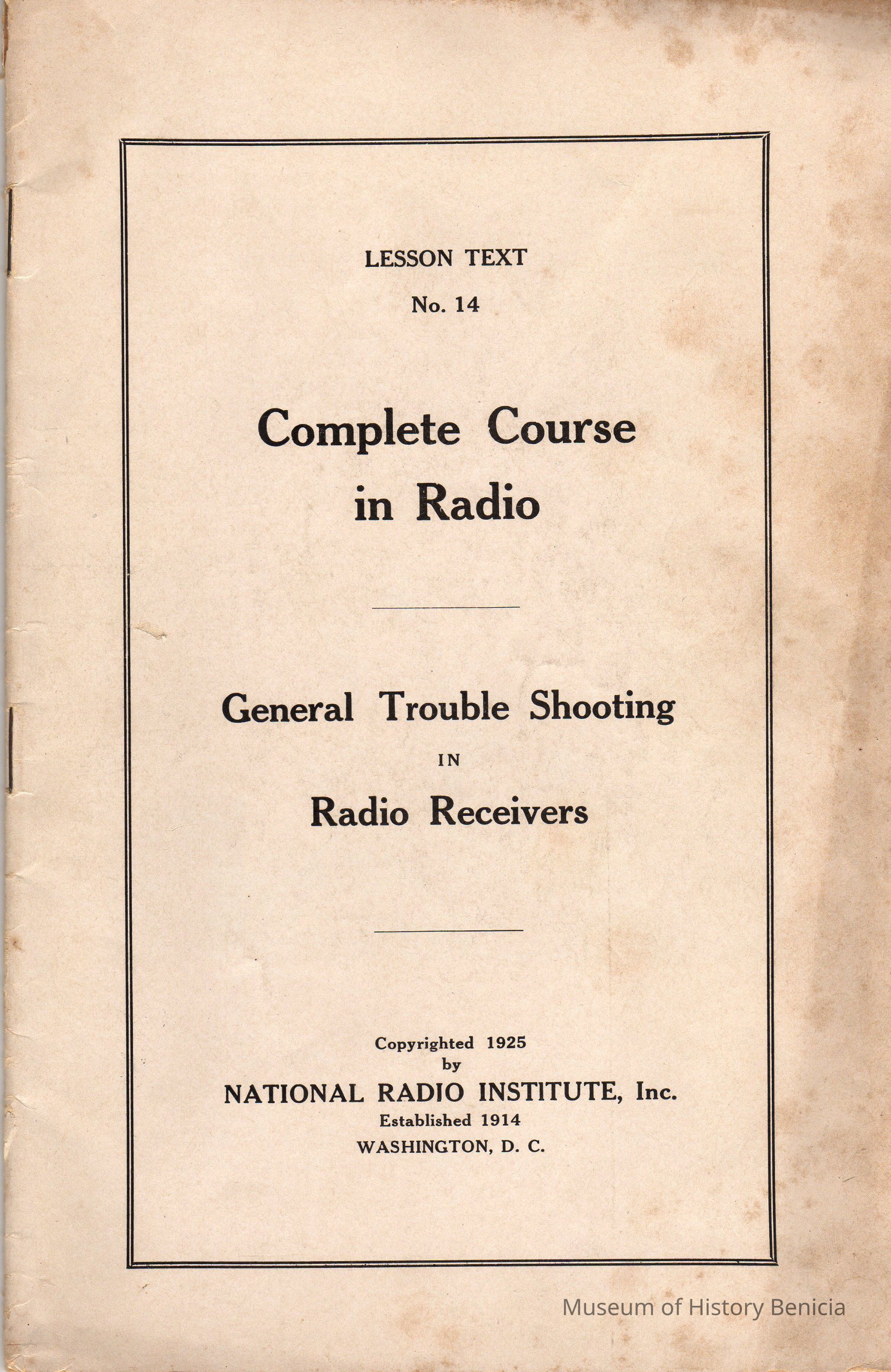Booklet on Radio from National Radio Institute, Inc. in Washington D.C. (estab. 1914)