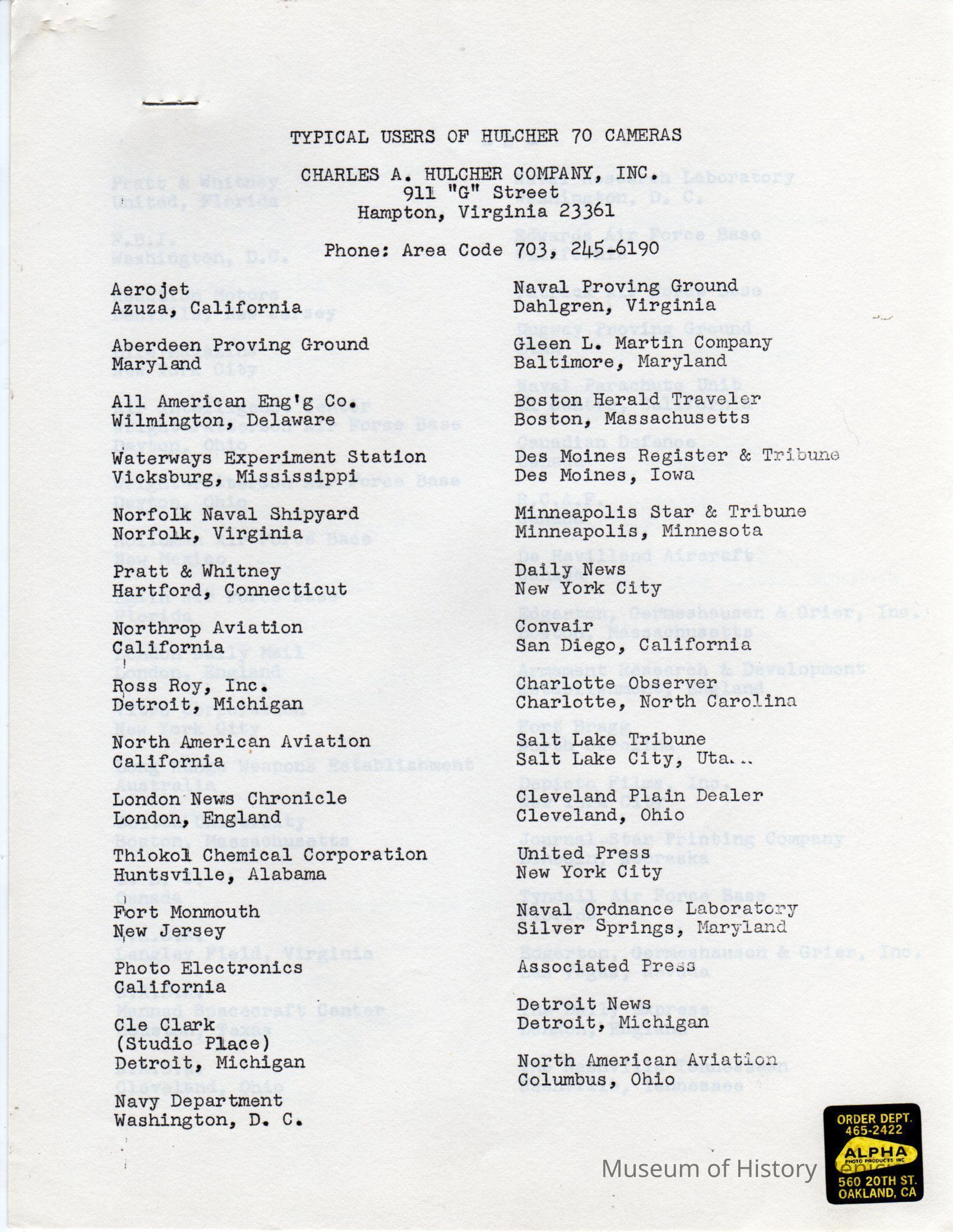 Hulcher 70 Camera Users