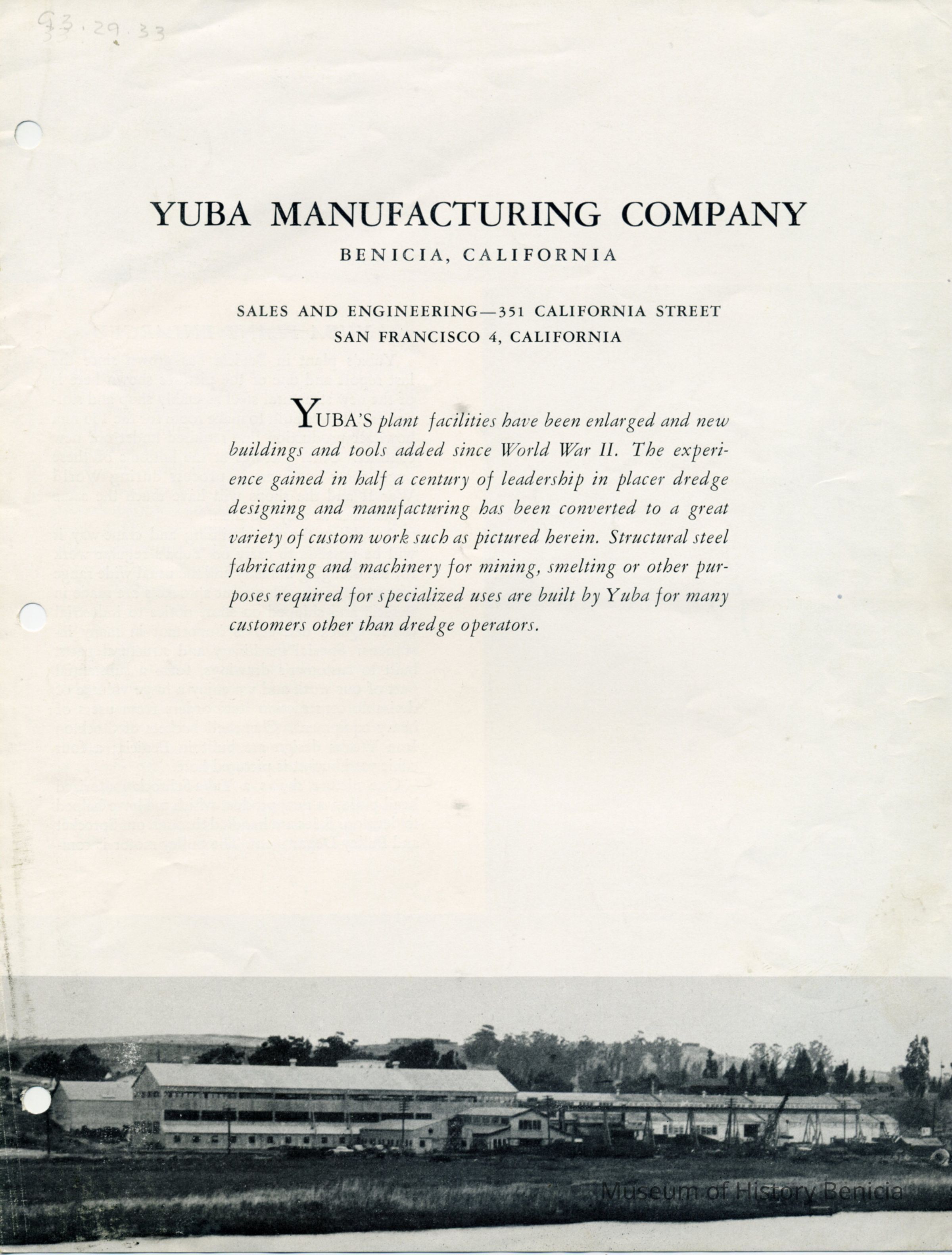 Yuba pamphlet re expansion needed for assembly shop and storage bay facilities because of the new contract to again build 155mm Howitzer during the Korean Conflict of 1950-53. 4 pagesCollection