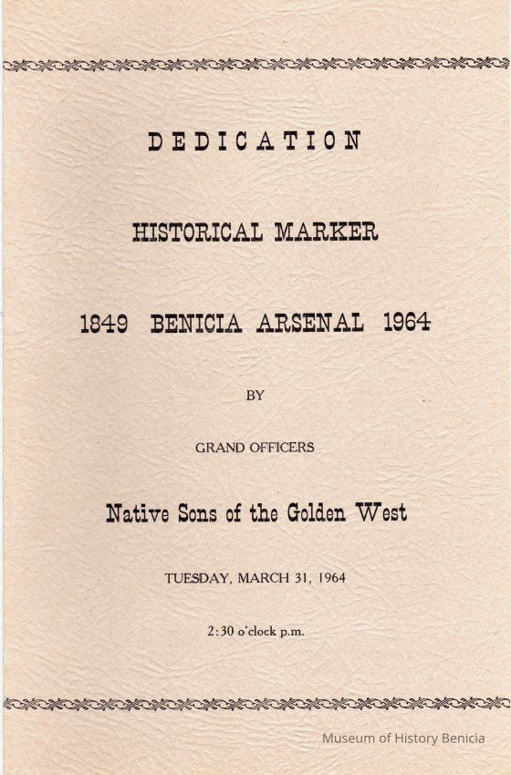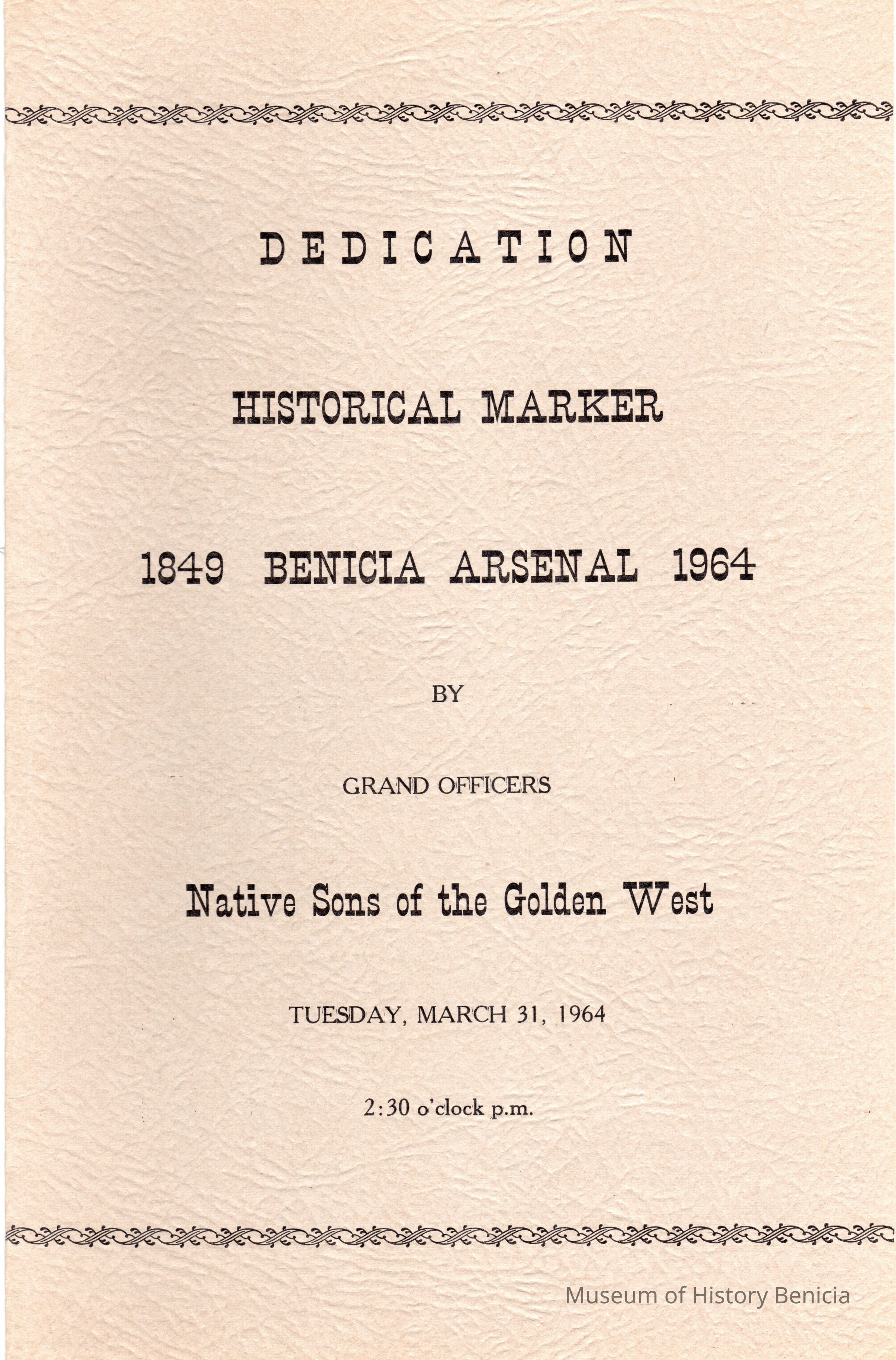Booklett on dedication of Benicia Arsenal Historical Marker 03/31/1964